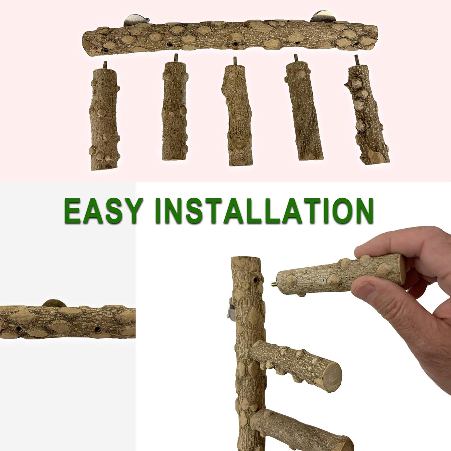 - ORIGINAL DESIGN: Our bird perch may be installed inside or outside of cage with metal screws and nuts that come with the ladder. It is an excellent accessory for bird cages.