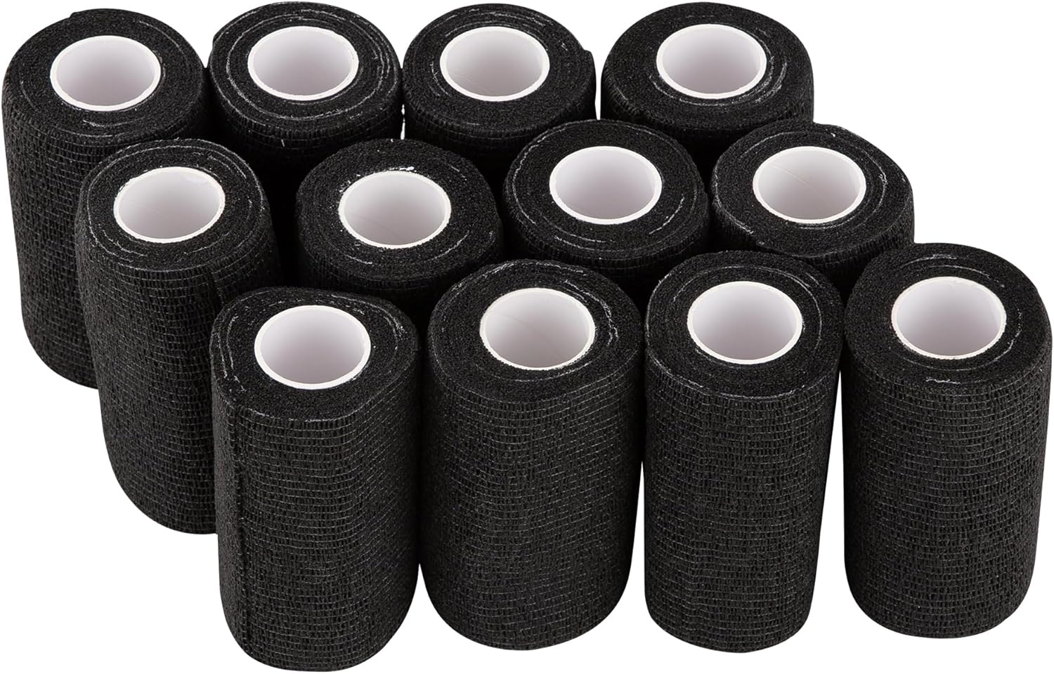 - Package Content: Come with 12 rolls self adhesive bandage tape in black, the width is 4 inches and the streched length up to 5 yards. Each roll individually polybagged for convenient use and storage, practical value pack.