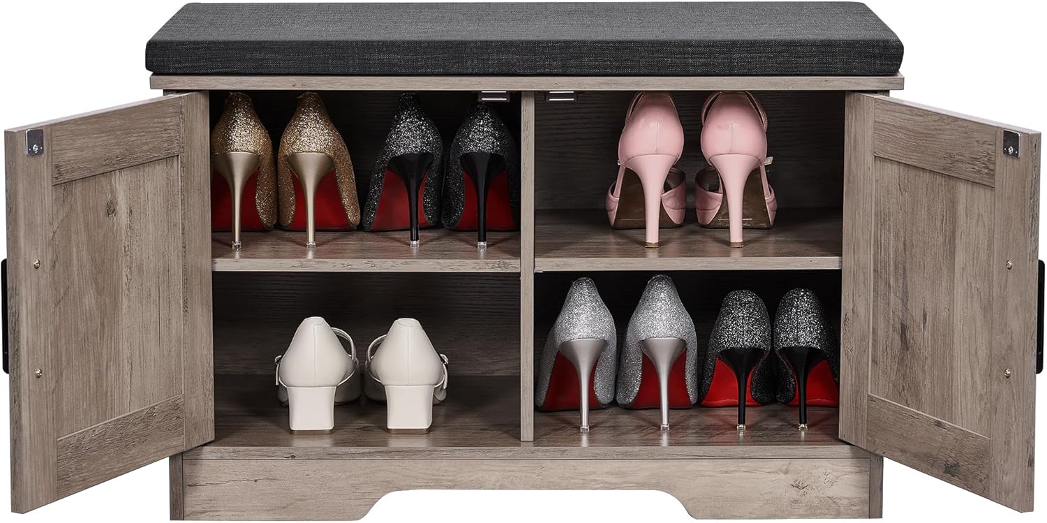 - Keep Your Shoes Organized: The depth of bench is 13.8 inches, which makes it easily to put in your shoes, meanwhile shoes of various heights can be placed by adjusting middle movable boards. The bench doors design ensures not only your privacy, but also a tidy space