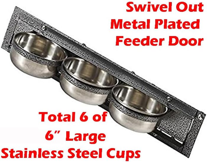 - Total 6 x Large 6" Stainless Steel Feeder Cups and 4 x 4" Stainless Steel Feeder Cups and 3 Wooden Stand Perches;