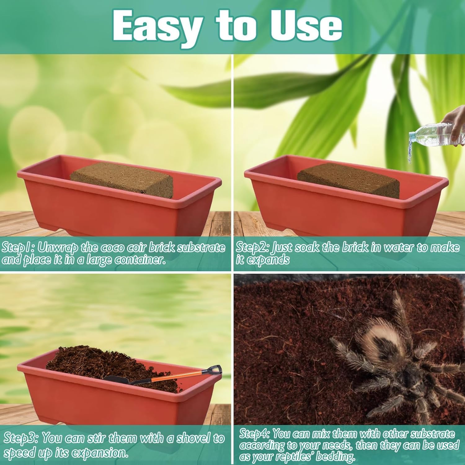 - Minimize Odor & Break Down Waste: Our coconut fiber substrate for reptiles can minimize odor and break down waste. It can provide a clean, comfortable living environment for your reptiles. Maintain substrate health and make reptiles feel more like at home