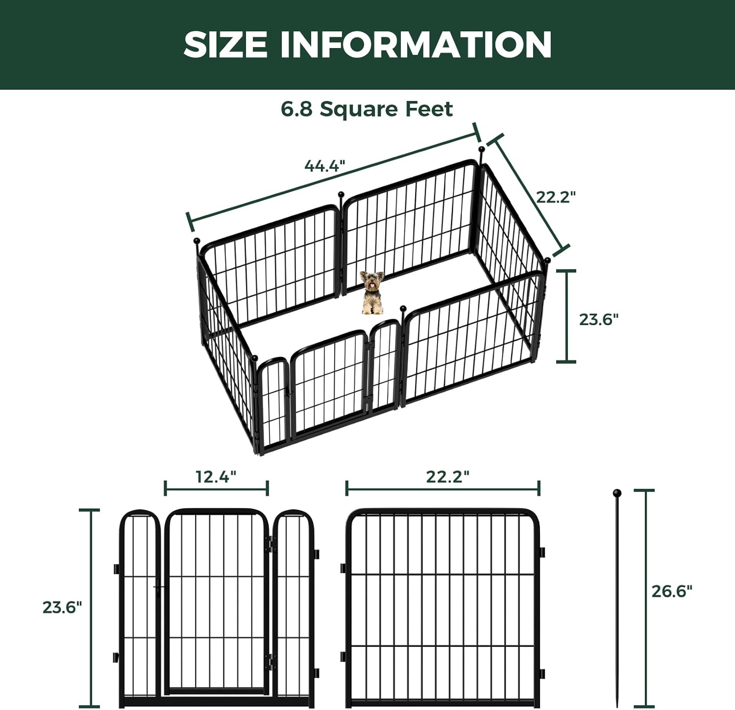 - Super easy to assemble: It won’t take you more than 5 minutes to assemble these portable dog fences as well as pack them away due to the rod-connected design. Meanwhile, panels can be added or removed freely to give you a fully flexible area and arrange the dog pen in any shape you need.