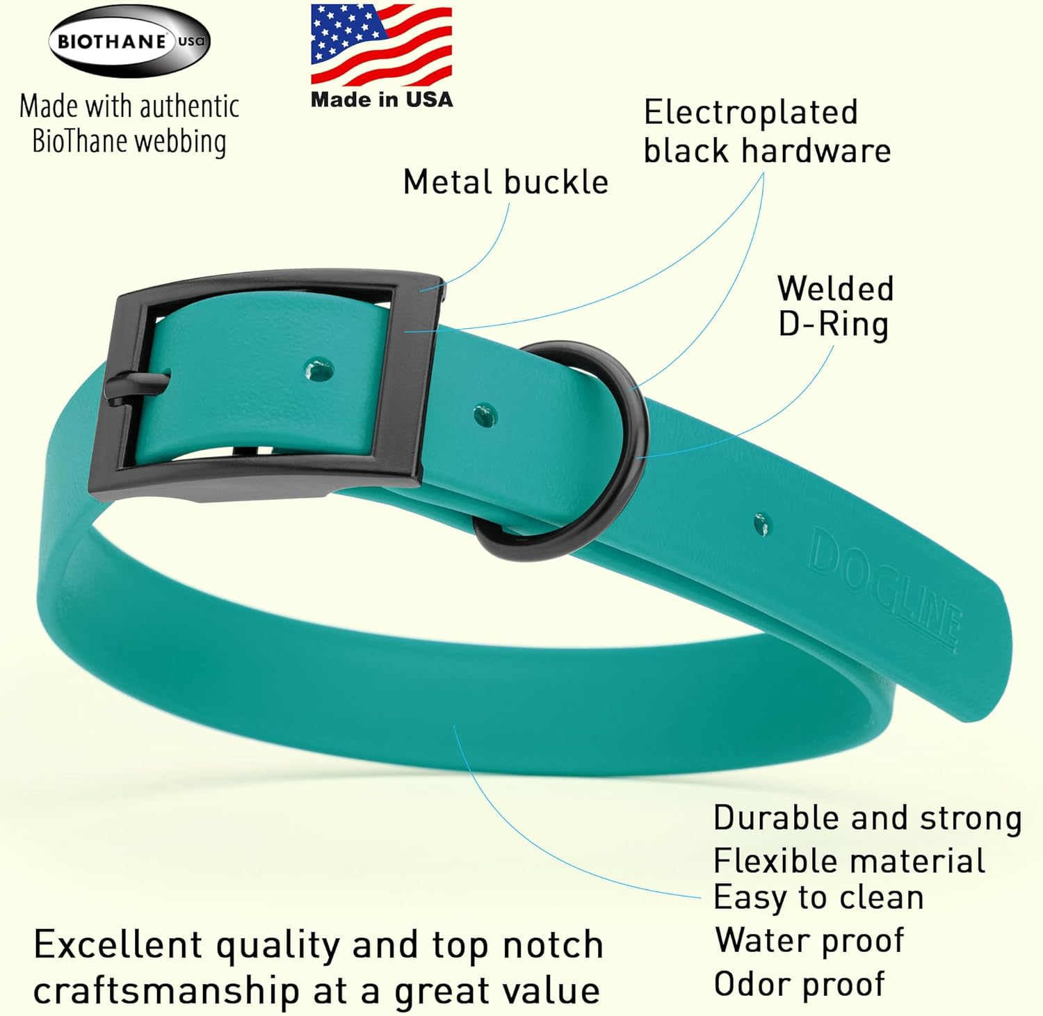 - Free Your Dog to romp in puddles and retrieve from lakes with the Dogline Biothane Waterproof Dog Collar. This water-repellent collar stays dry and odor-free, without shrinking or losing flexibility.