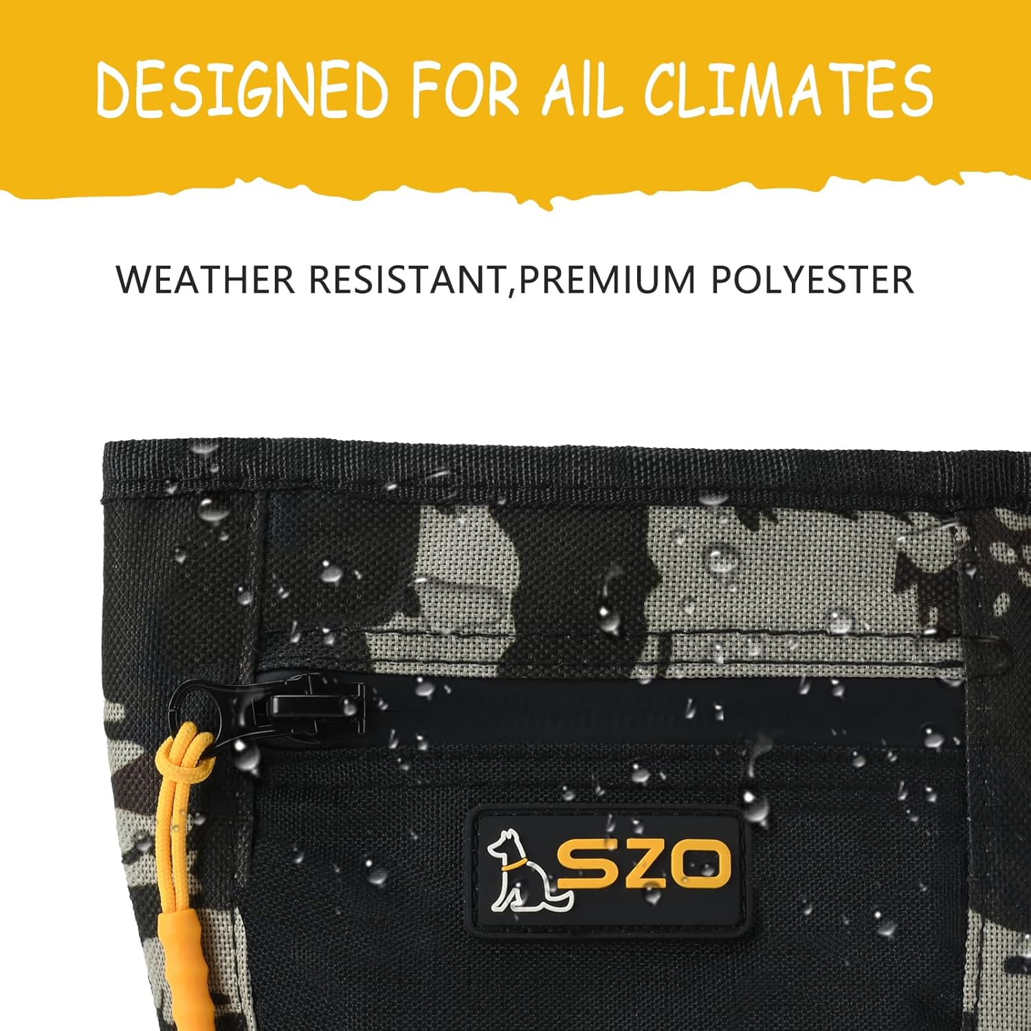 - Easy To Use — SZO dog treat pouch is designed to fit your everyday use when training your pets. It features a magnetic closure, allowing quick and one-handed access to your pet's favorite treats. And a front zipper pocket to secure personal items!