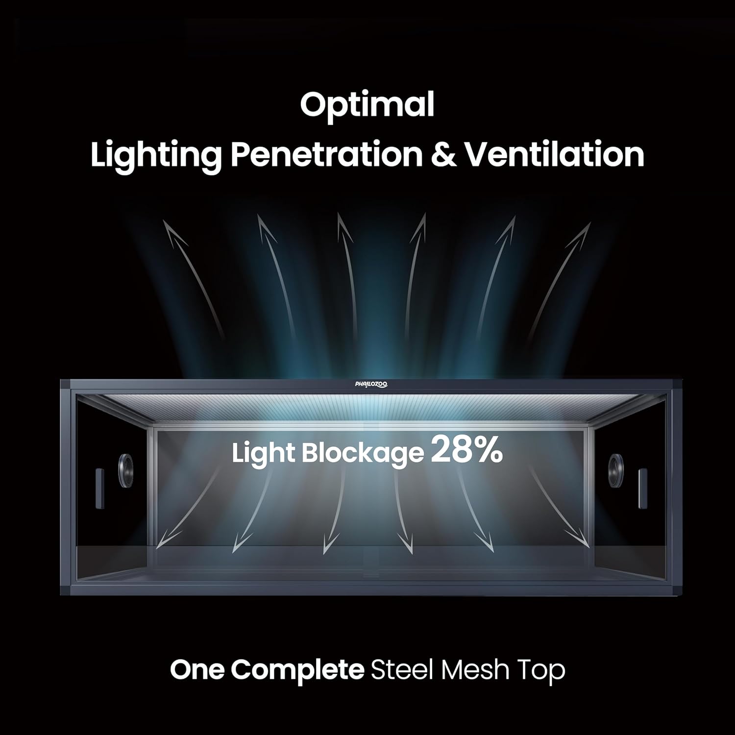 - ăHighly AdaptiveăWell-lit screen top with only 28% blockage. Compatible with many reptile accessories and equipment, such as heat lamps for reptiles, reptile humidifiers, reptile misters, reptile foggers, reptile UVA and UVB. Our reptile terrarium is great for holding temps and humidity.