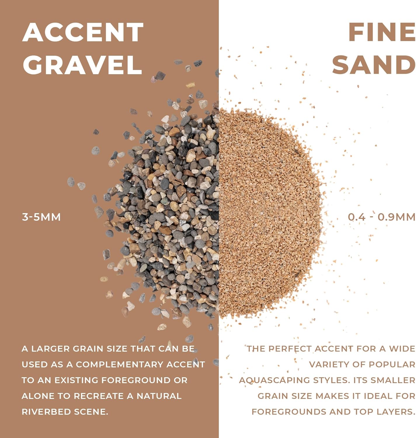 - [Fine-grained Substrate] Our fine-grained Mojave sand is a mixture of richer colors, producing a warmer tone. This fish tank substrate also works in blackwater aquariums, biotopes or planted tanks that feature Dragon Stone or aquarium driftwood.