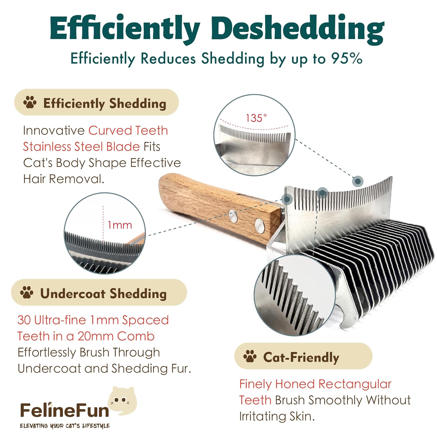 FelineFun Cat Brush for Dematting & Deshedding, 2 in 1 Undercoat Rake, Efficiently Remove Loose Hair & Matted Fur, Professional Shedding Comb for Indoor Cats & Long Haired Cats