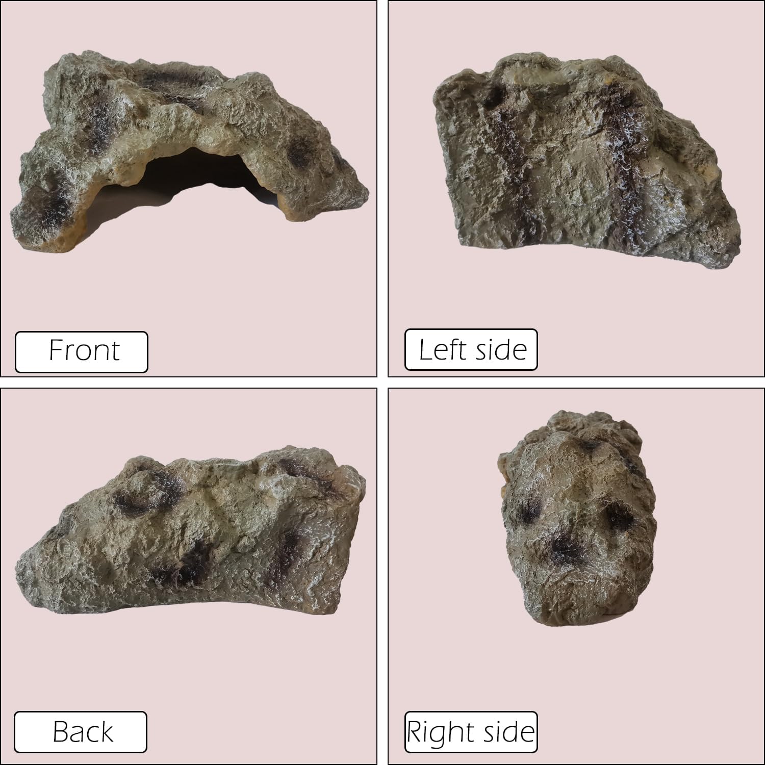 - Space-saving shape - One of the corners is right-angle of this aquarium cave. It’s delicately designed for the tank angle for saving space. It’s more stable when you place this reptile rock by the corner of the snake hide box or terrarium.