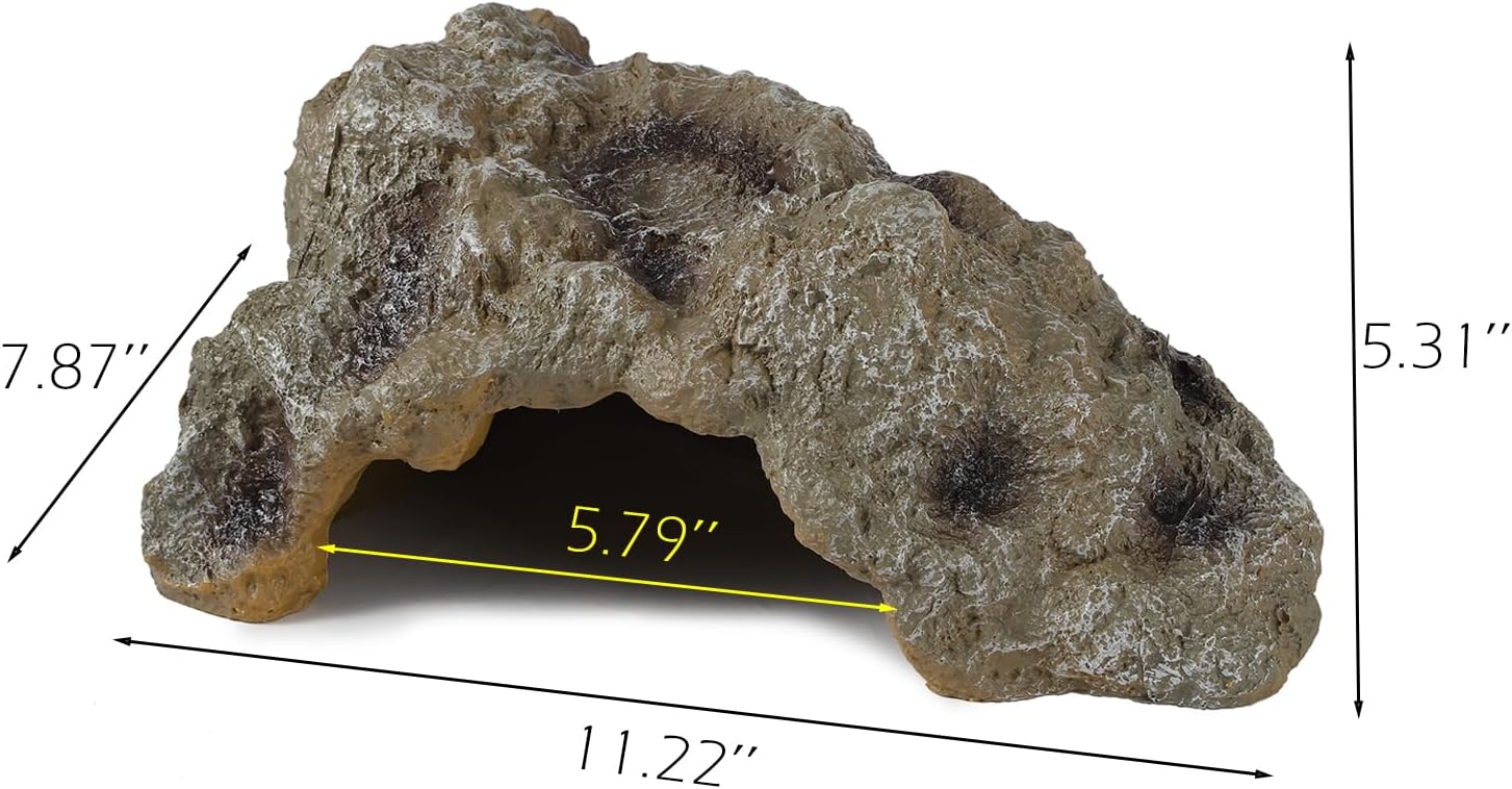 - Size – The cave has a suitable size entrance (Please read the measurement pic for details). The edges of this reptile cave and rock are crafted exquisitely to be smooth and safe to avoid cutting your pet. This reptile rock creates a comfortable and natural hide for ball python, bearded dragon, leopard gecko, tortoise and lizards, etc.