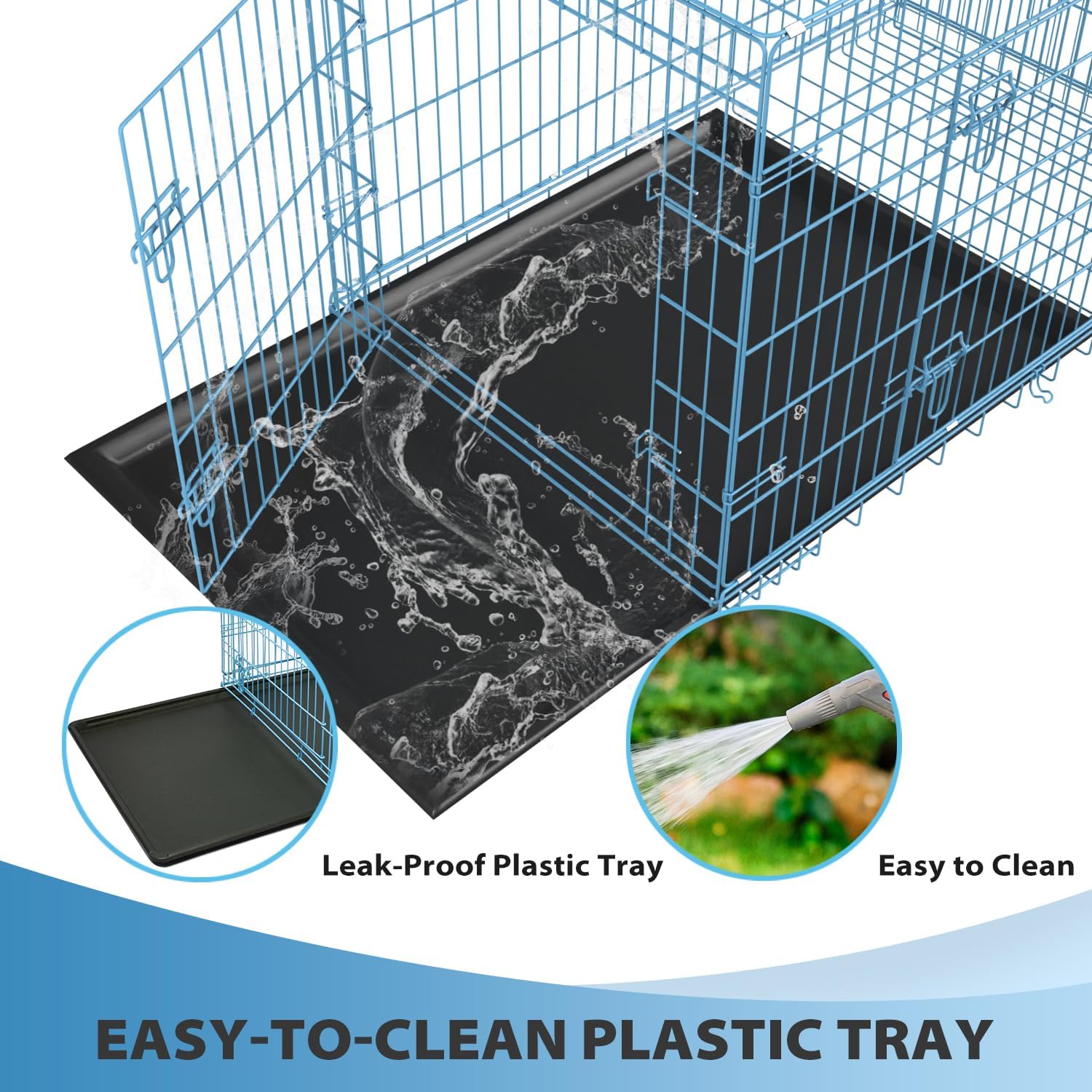 - LEAKPROOF & EASY TO CLEAN: Equipped with a durable, removable ABS tray that contains messes, resists stains and odors, and makes cleaning your indoor dog kennel quick and stress-free.