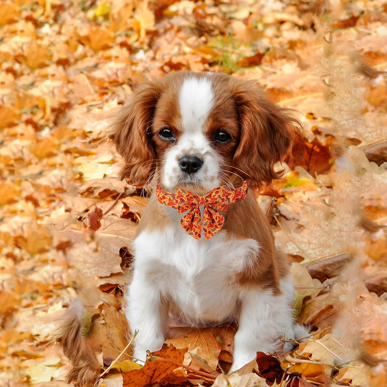 Lionet Paws Dog Collar with Bowtie - Cute Cotton Adjustable Fall Bowtie Dog Collar with Metal Buckle for Small Medium Large Dog Girl Boy Gift, M, Neck 13.5-22in