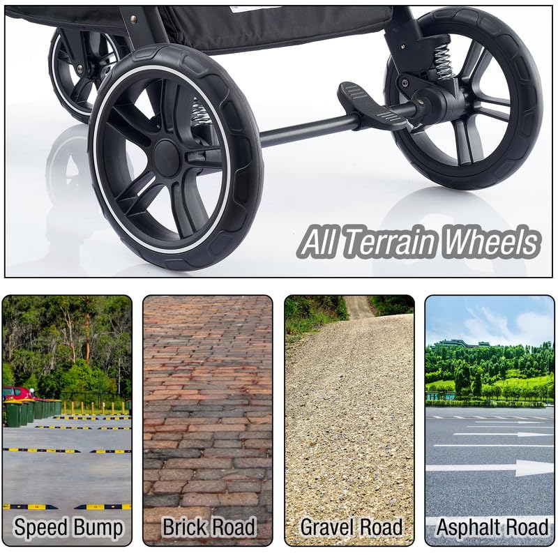 - Comfort & Safety: Your dog's comfort and safety are our top priorities. The plush padded seat of the stroller ensures a cozy ride, keeping your furry friend relaxed during every outing. The secure support structure inside the basket provides stability and peace of mind, knowing your pet is safe and secure. Whether it's a leisurely stroll in the park or a busy day of shopping, your pet will love the comfortable ride, while you have the assurance that they are well-protected.