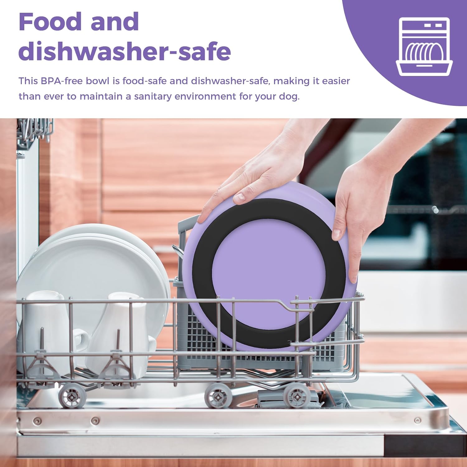 Dog Bowl, Stainless Steel Dog Food and Water Bowl with Non Slip Quiet Bottom, Easy to Clean, Dishwasher Safe, 40oz, Light Purple