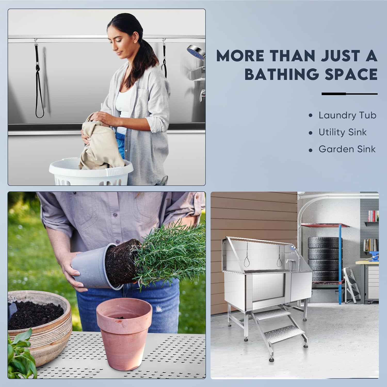 - 🐶Wide Application - Pet grooming tub for large dogs has adjustable hot and cold water control faucet, this pet dog shower sink station is particularly suitable for pet beauty shops of all sizes for pet bath. Wide Application for home commercial animal grooming wash care, wash tub for garden or laundry, and more in extra use waiting for you
