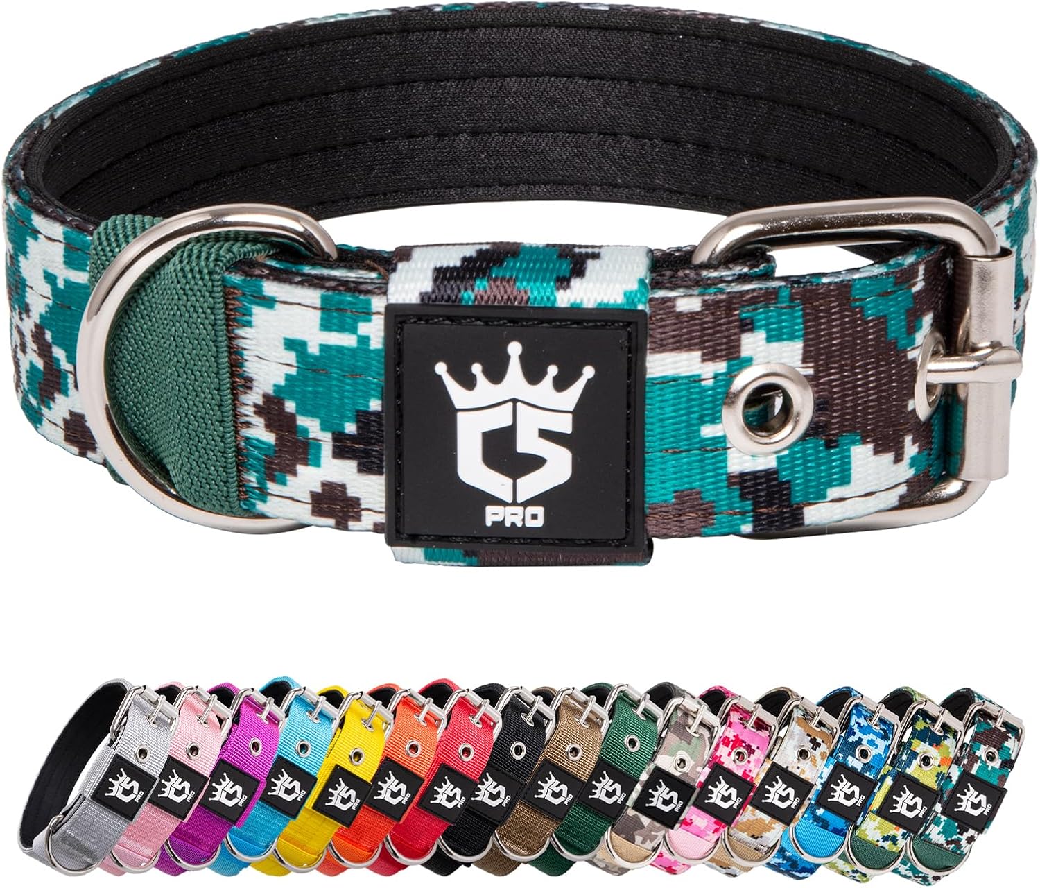 TSPRO Tactical Dog Collar 1.25 Inch Wide Thick Dog Collars with Heavy Duty Metal Buckle, Durable, Strong, Adjustable for Small Dogs (Camo Cyan S)