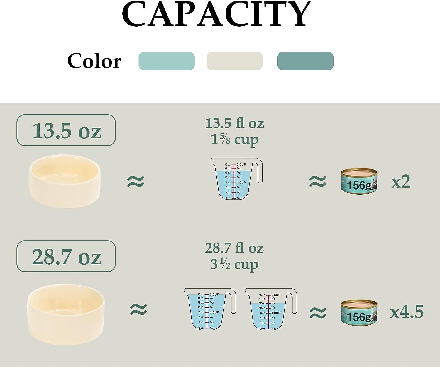 - [Capacity]:3.6 cups(850 ml, 29 Fluid Ounces) capacity of each single bowl, perfect for different breeds of kittens and dog who needs diet control due to the weight