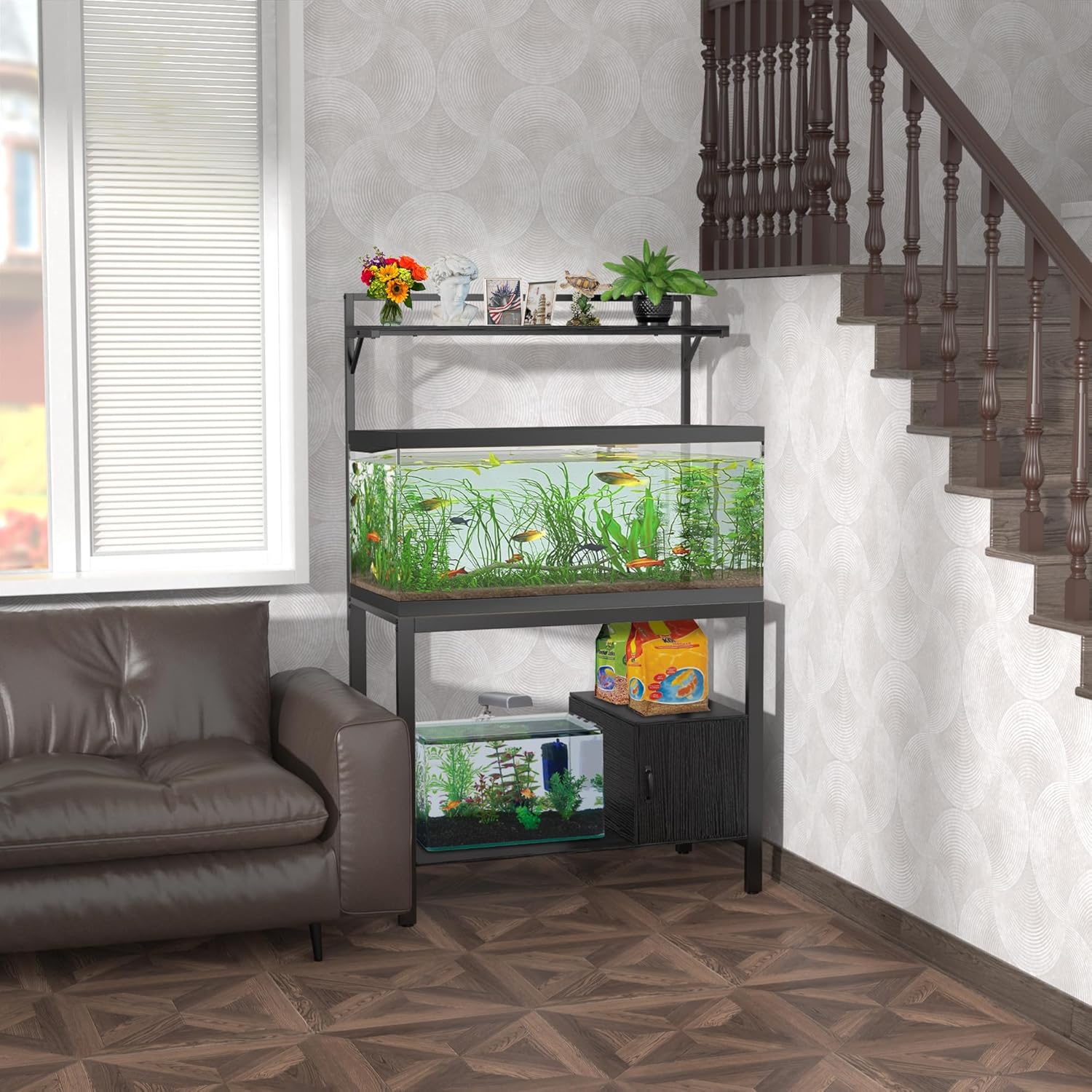 GDLF 40-50 Gallon Fish Tank Stand with Plant Shelf Metal Aquarium Stand with Cubby Storage 36.6" x 18.5" Tabletop fits Aquarium,Turtle Tank,or Reptile Terrariums