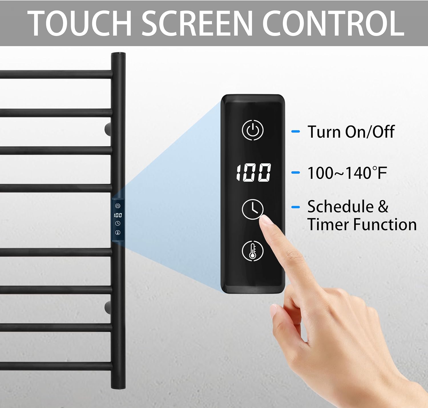 - [PREMIUM QUALITY WITH ELEGANT LOOK]: The bath towel warmer is made of durable 304 stainless steel, easy to clean and durable use. IP56 Waterproof standard and wall-mounted design maximizes your floor space.