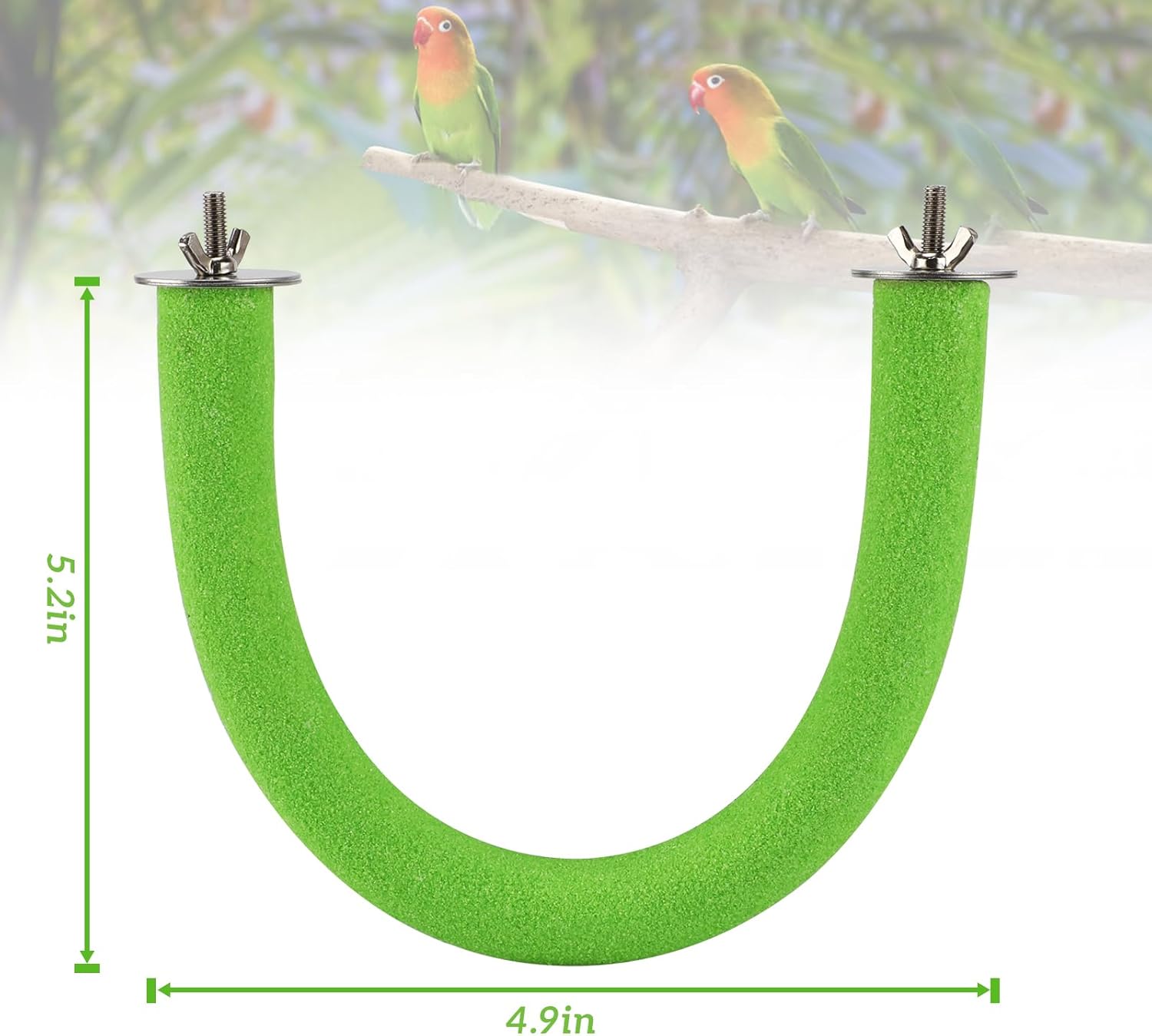 Rypet U Shape Parrot Perch Stand Toy for Paw Grinding Clean Stick Exercise, Rough-Surfaced Quartz Bird Perch Standing Cage Accessories for for Small Parakeets Cockatiels Conures Macaws Finches(Green)
