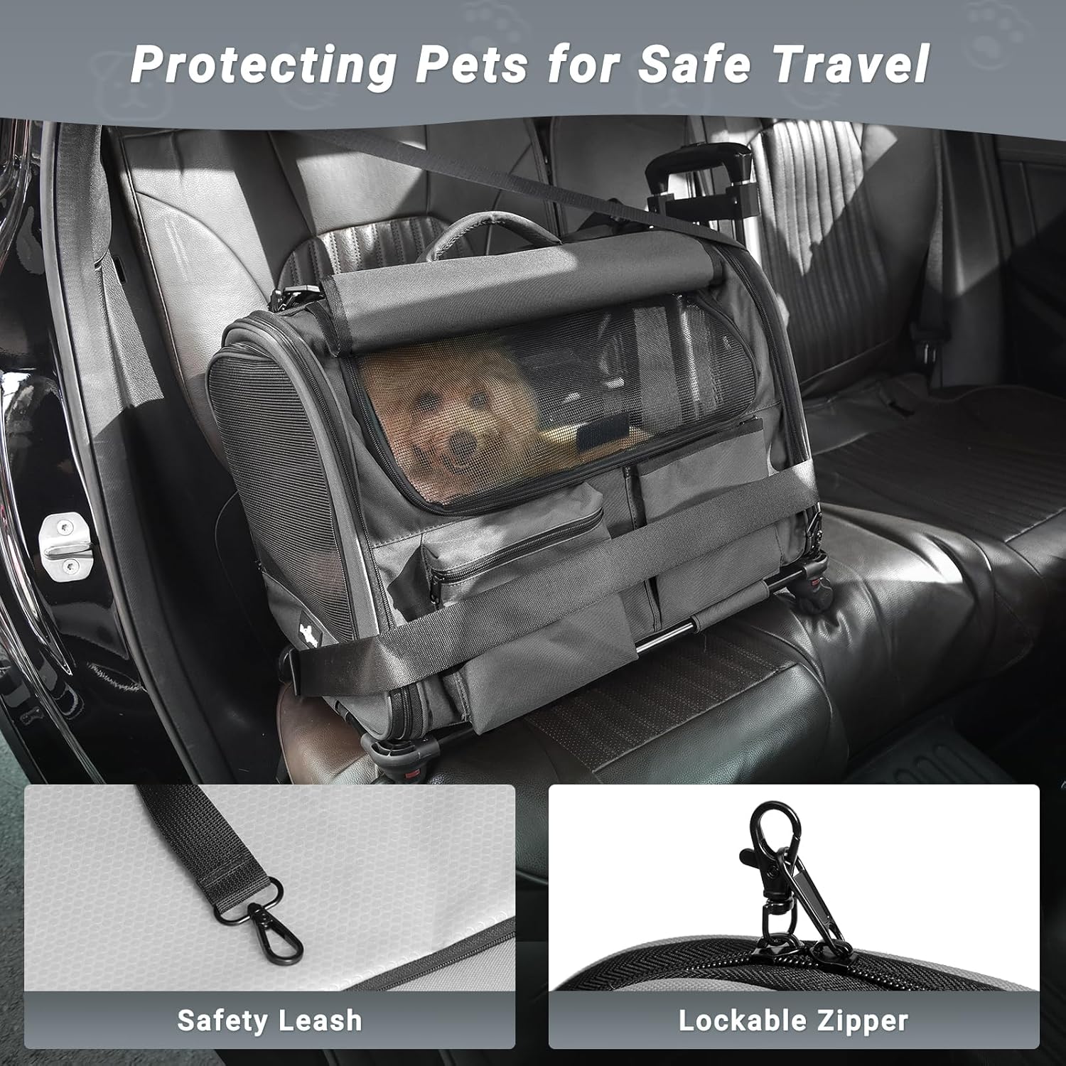 Large Pet Carrier with Wheels, Foldable Rolling Dog Carrier with Wheels and Big Pocket, Cat Rolling Bag 21"x13"x13" for 2 Cats &Dogs, for Travel, Outdoor, Vet Visits, Camping, Indoor. Gray