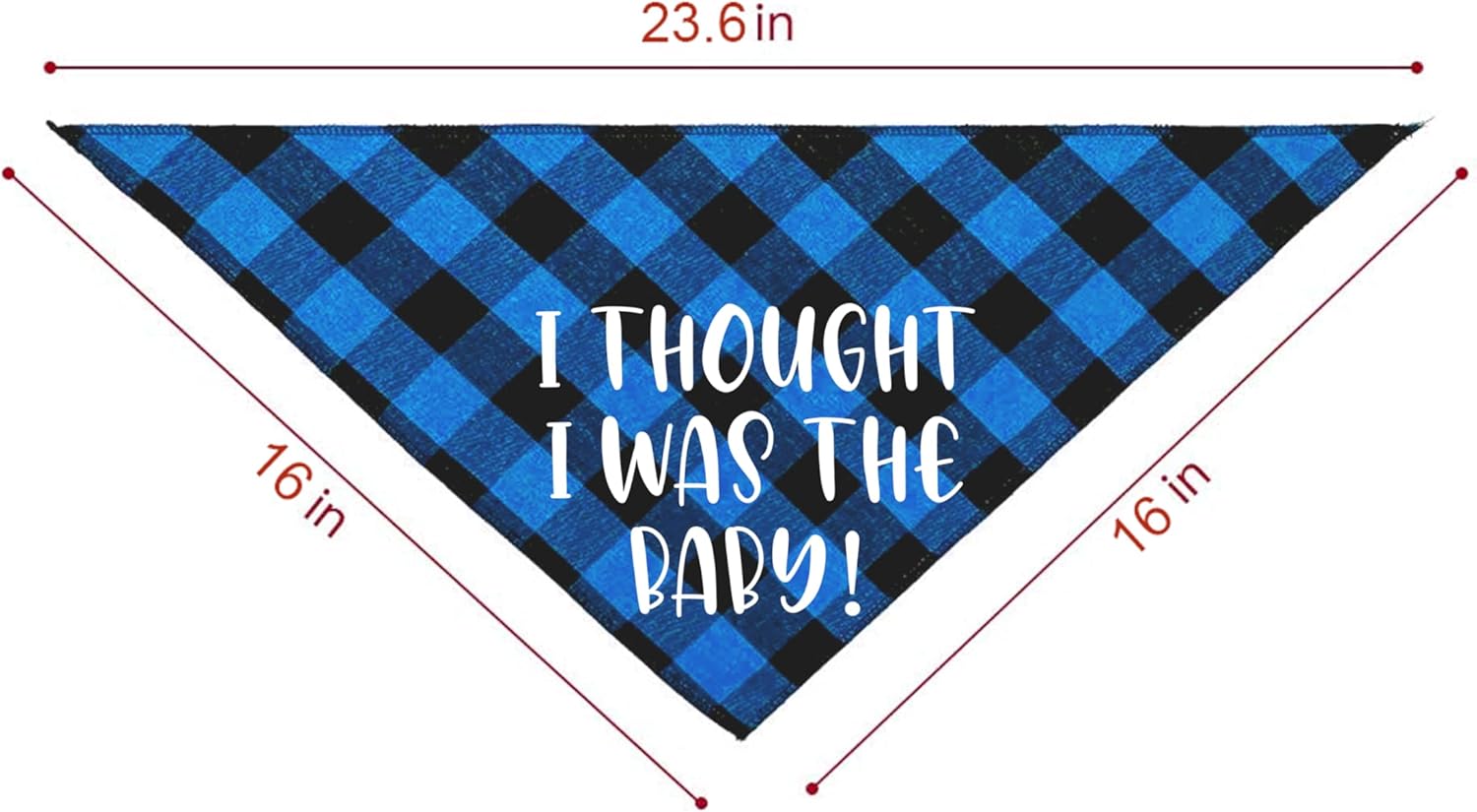 I Thought I was The Baby Funny Red Plaid Cotton Pet Dog Triangle Bandana Bibs, Pet Dog Gender Reveal Pregnancy Announcement Photograph Scarf Photo Props Birthday Party for Pet Dog Lovers Gifts