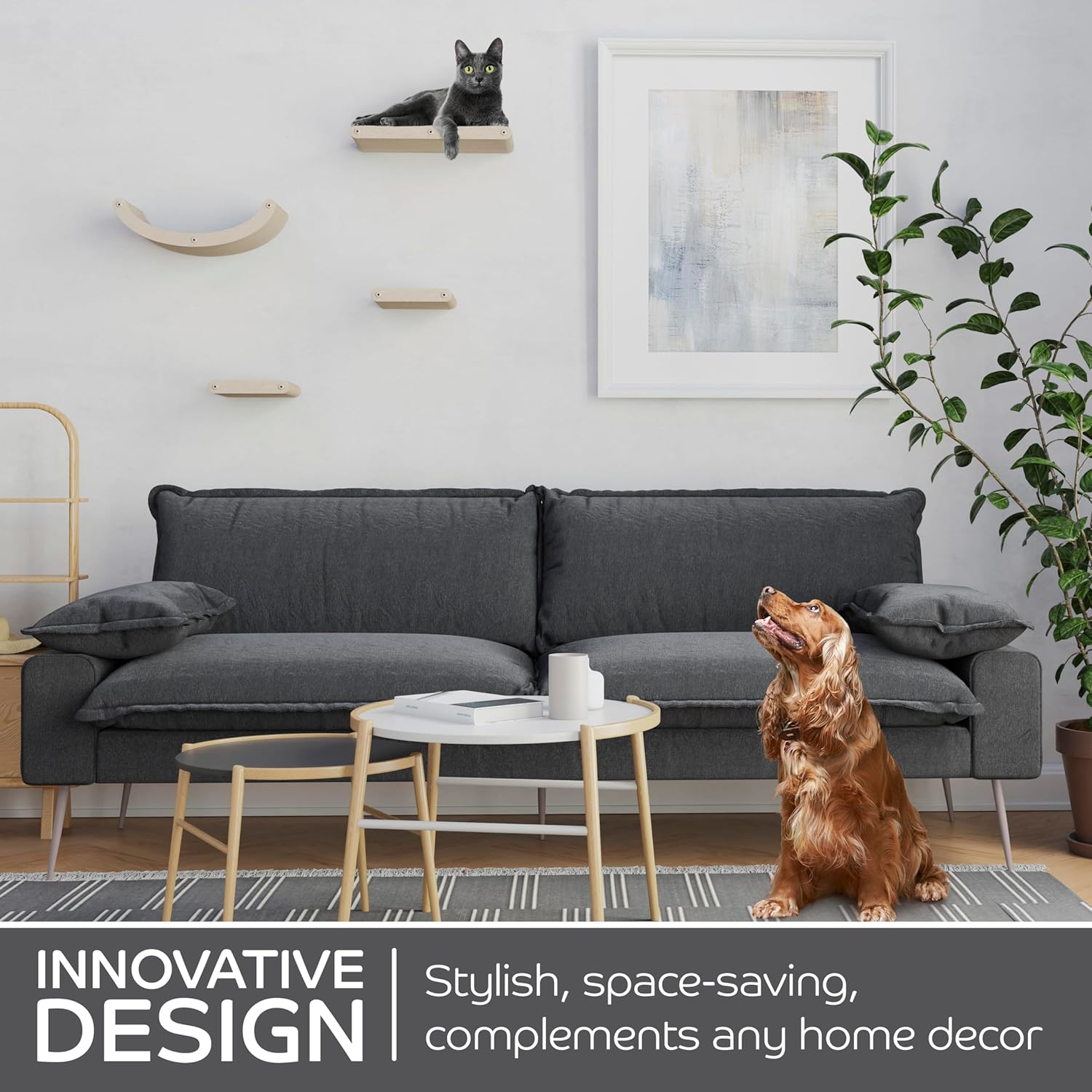 - INNOVATIVE AND SUSTAINABLE | Soft to the touch, firm in structure, and very tactile – cats love it! Our patent-pending cat shelf material is acoustic felt which is made from 100% Recycled PET bottles! It's built to withstand extended wear and tear.