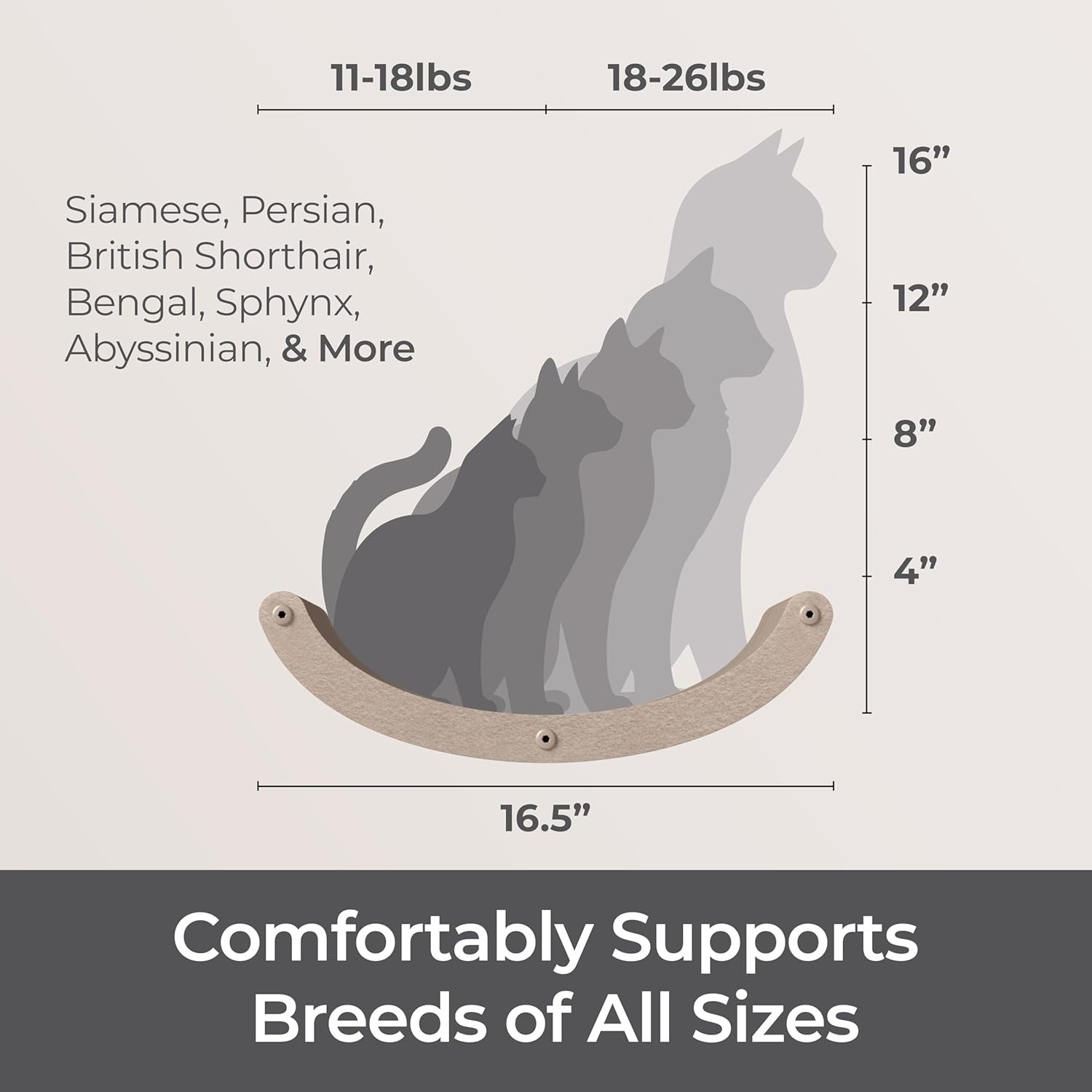 Wall Mounted Cat Hammock Bed by Pryde Pets - Floating Perch Curved Shelf, 100% Sustainable PET Felt Feline Enrichment Climber Furniture for Indoor Cats, Modern Climbing Gym Jungle Design (Oatmeal)