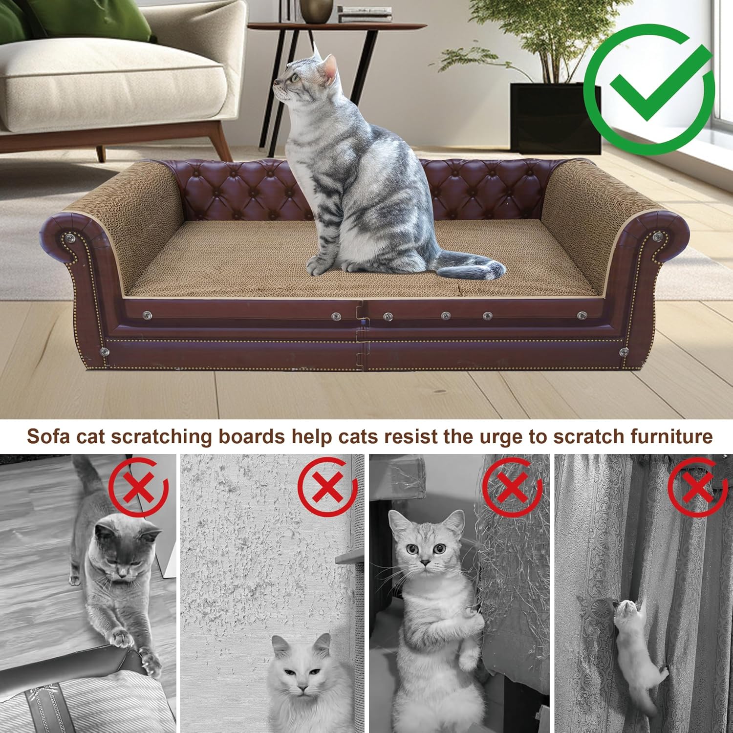 - Modern & Simple Design: the cat scratching furniture is scaled down from the shape of a real sofa, with backrest for the cat to lean on and large platform for the cat to rest comfortably. Attractive sofa bed design that cats will love to lie on and scratch it.