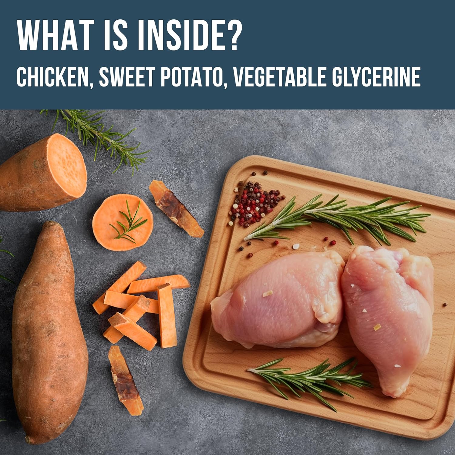 - SWEET POTATO JERKY CHICKEN WRAPS MADE OF 100% MEAT: You need to let your dog enjoy high quality natural and healthy food. It is right to choose our product. Dog chewies are perfect for training, these top jerky will last a long time and can special promote dogs' teeth healthy. Have less plaque and tartar. Keeps dogs' jaws strong and breath fresher.