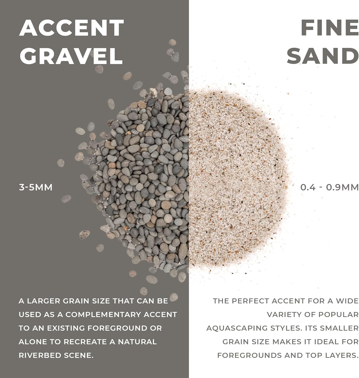 - [Fine-grained Substrate] Our fine-grained Mojave sand is a mixture of richer colors, producing a warmer tone. This fish tank substrate also works in blackwater aquariums, biotopes or planted tanks that feature Dragon Stone or aquarium driftwood.