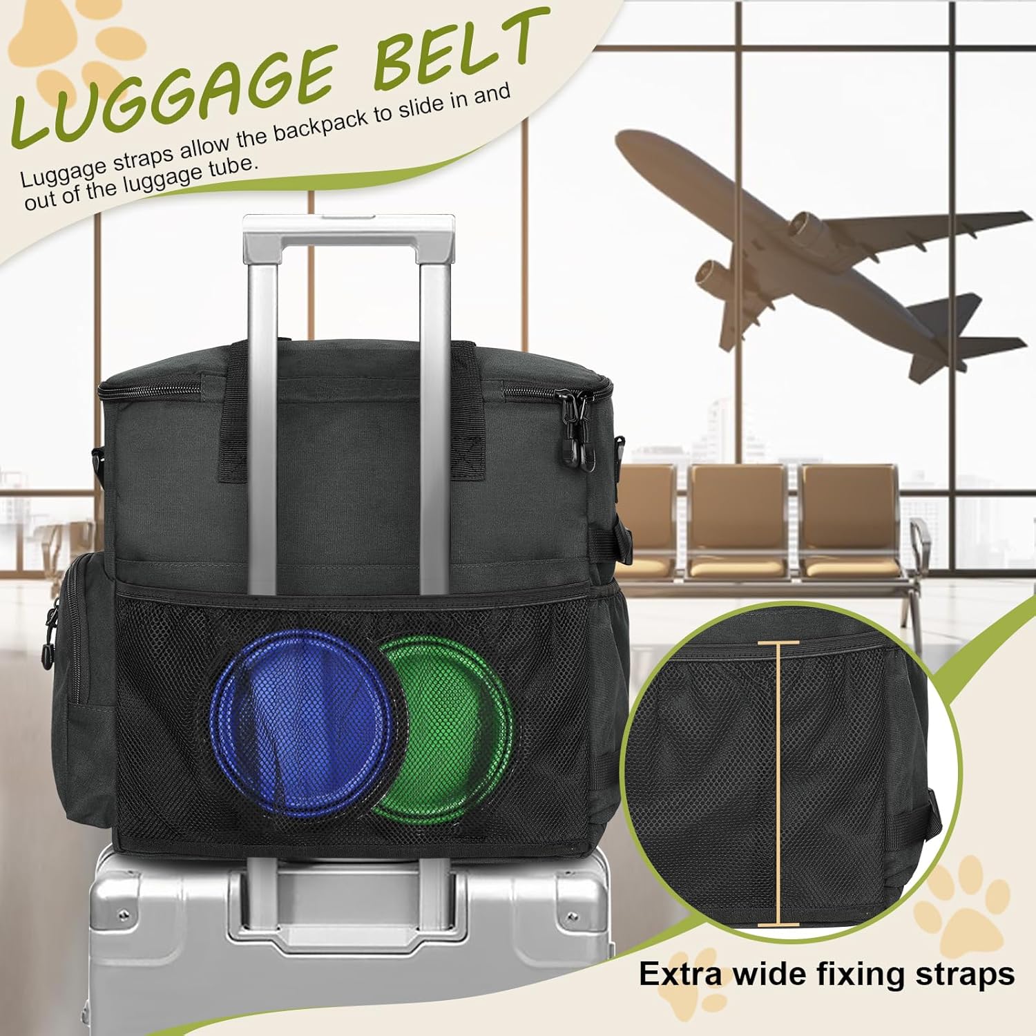 - Smart Storage & Organization – Features multiple pockets, an adjustable flap, and a spacious main compartment to hold food, treats, toys, leashes, and pet essentials—keeping everything neatly in place
