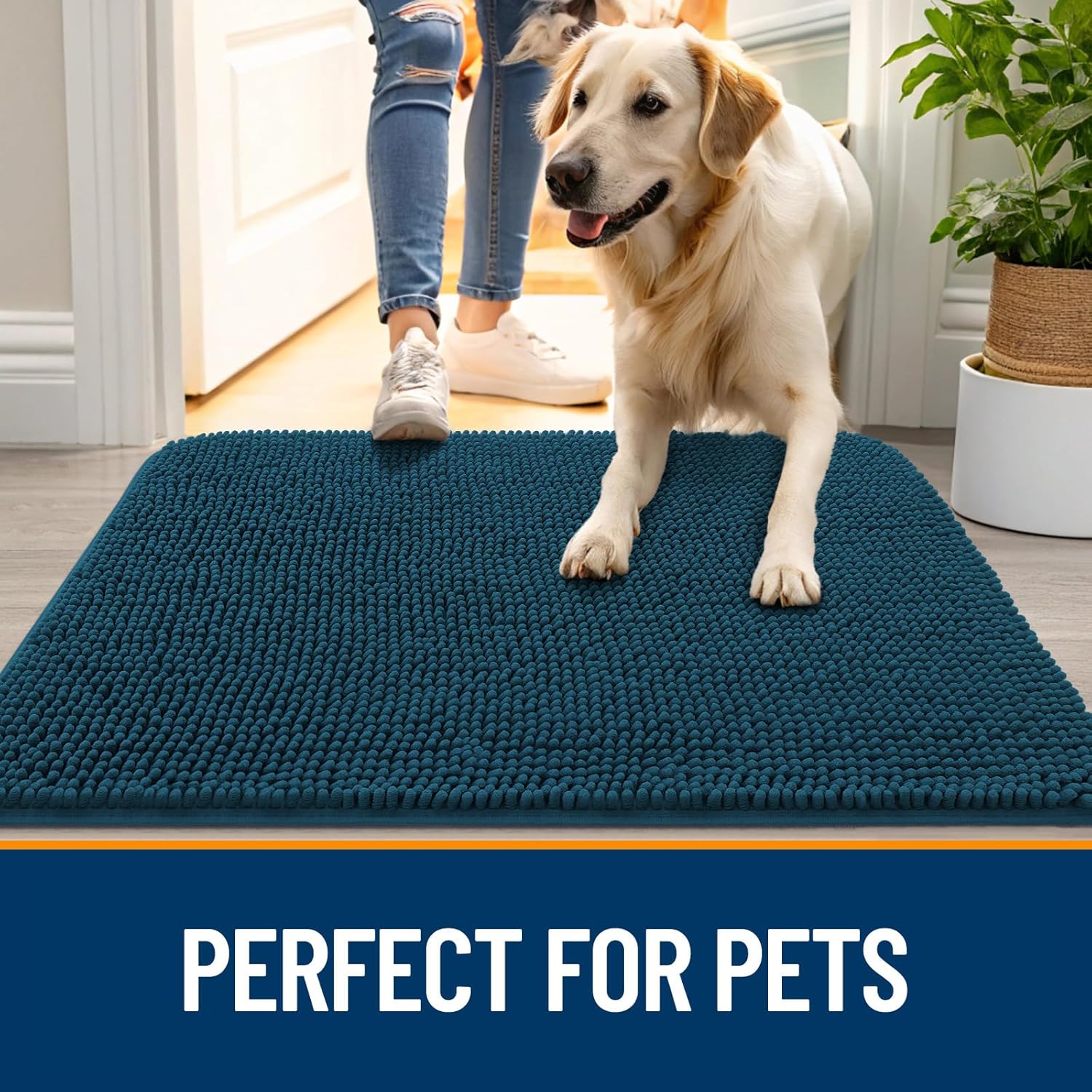 OLANLY Dog Door Mat for Muddy Paws 40x32, Absorbs Moisture and Dirt, Absorbent Non-Slip Washable Doormat, Quick Dry Chenille Mud Mat, Entry Indoor Entryway Carpet for Inside Floor, Atlantic Blue