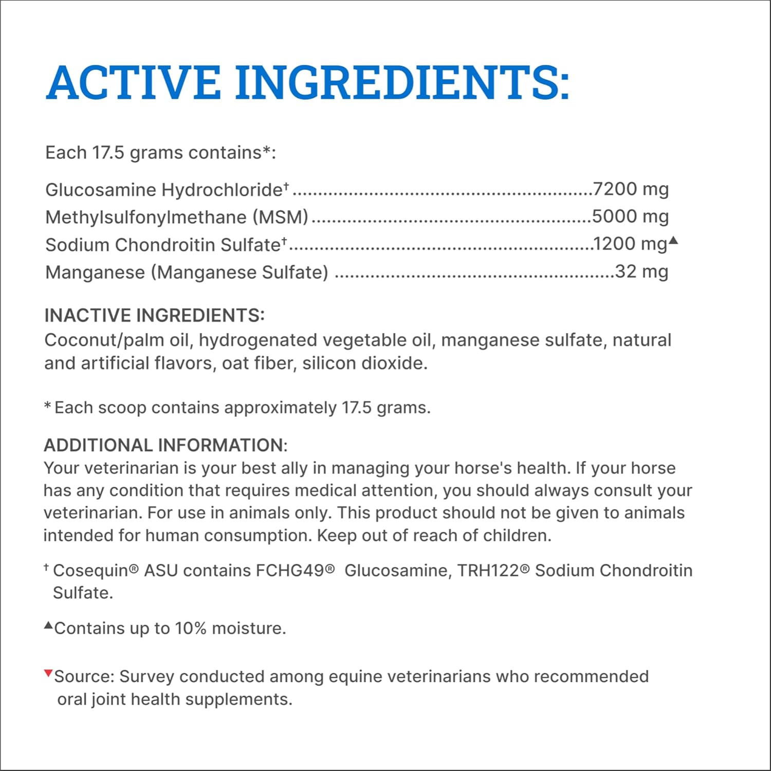 - Optimized Formula with MSM: a convenient way to provide MSM along with the proven ingredients in the original Cosequin Equine formula