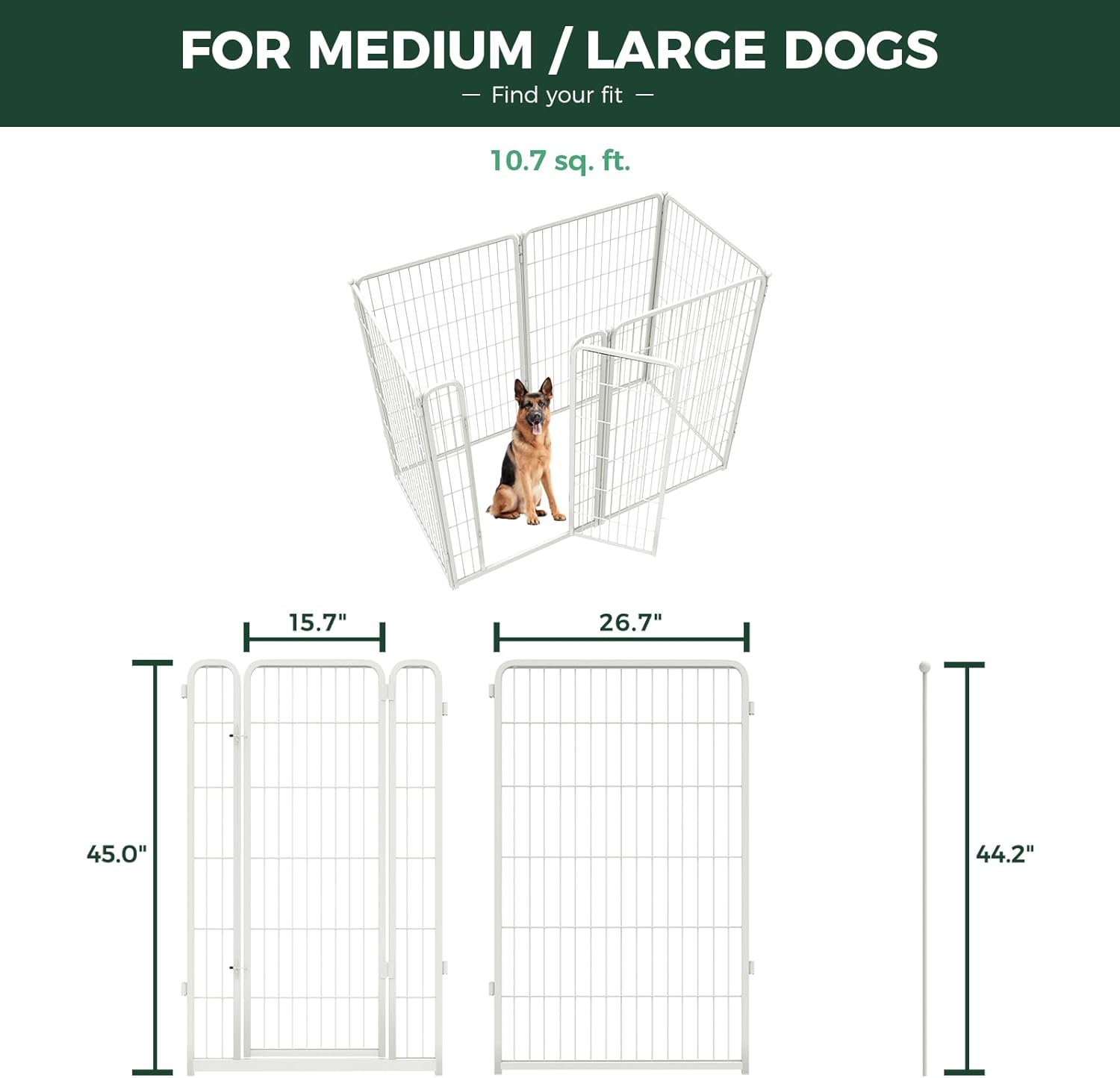 FXW Homeplus Unleashed Indoor Dog Playpen - Stress-Free and Safe Play, Heavy Duty 45 Inch 6 Wire Panels Dog Pen for Large Dogs, White│Patented