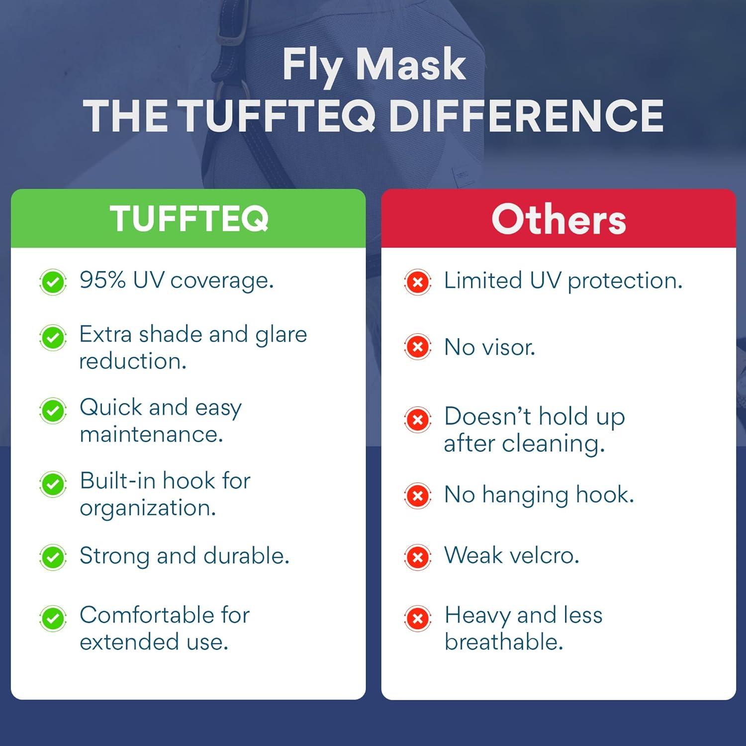 - BUILT IN VISOR & ULTIMATE EYE UV LIGHT PROTECTION: Our innovative design for the horse eye mask has UV blocking material for extra UV protection built-in as a horse visor, providing extra shade while reducing glare for enhanced eye comfort and cover for the face - making it a multi functional horse fly mask.