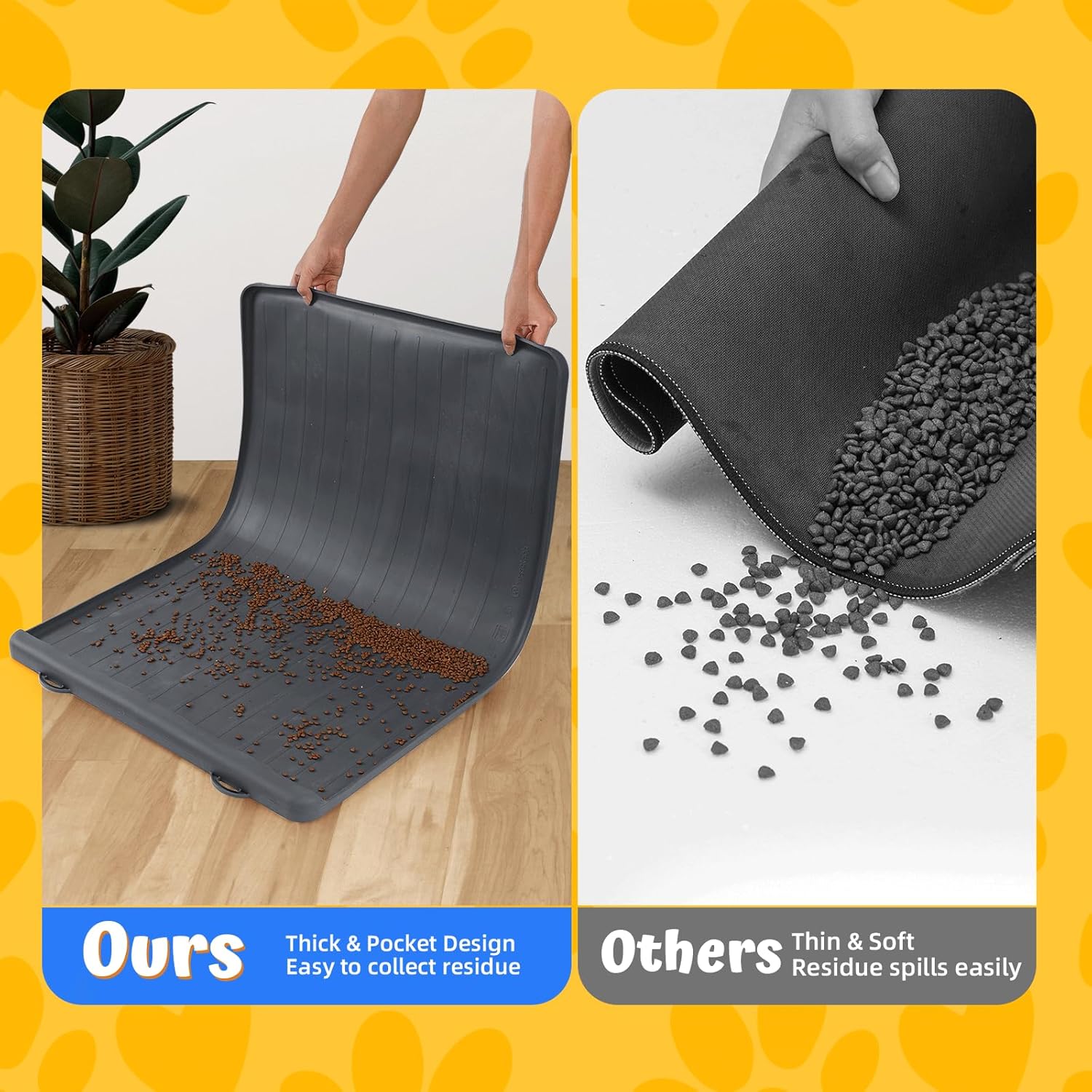 - EASY CLEANING WITH UNIQUE POCKET DESIGN: Say goodbye to messy floors with Yessotech's dog feeding mat! Our unique pocket design makes clean up a breeze. Simply pick up the mat from the other end and all the mess will fall into the pocket catch area.