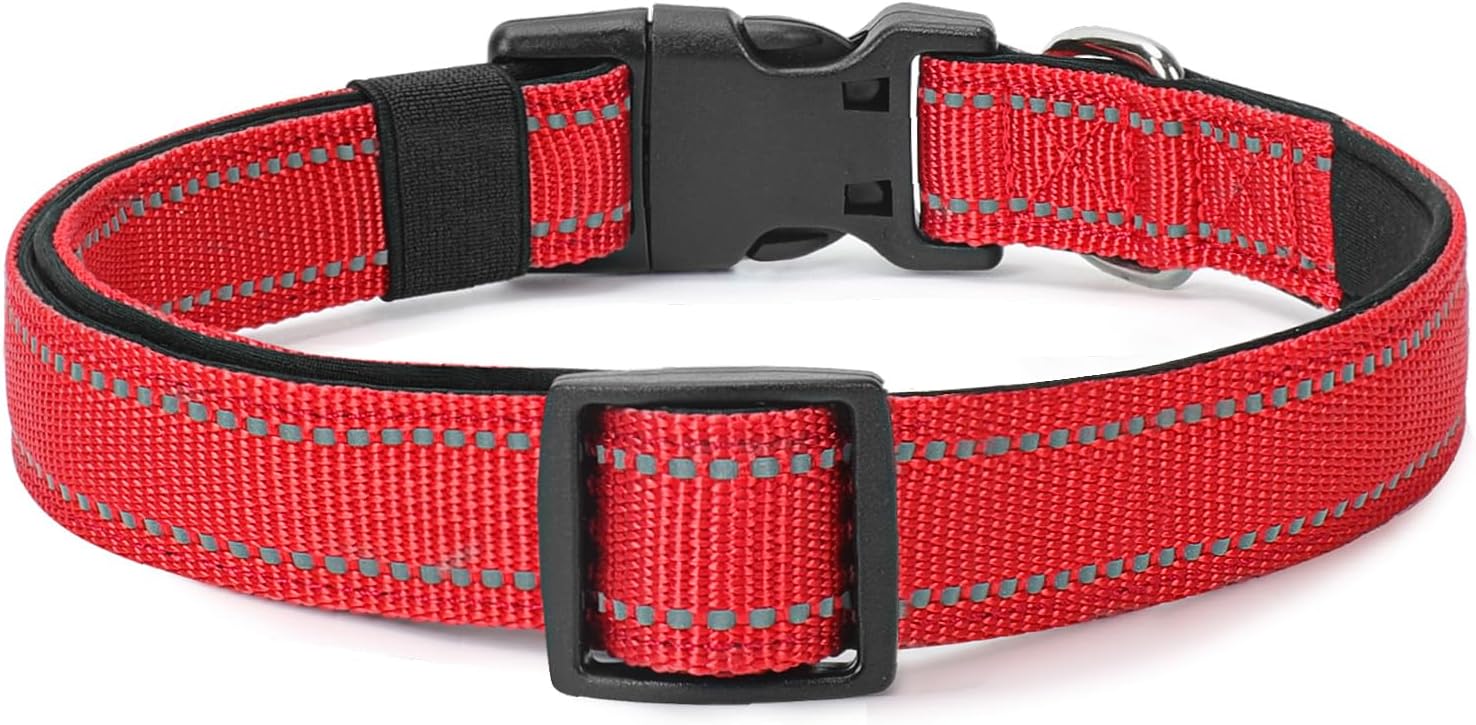 Reflective Dog Collar Padded with Soft Neoprene Breathable Quick Release Basic Dog Collars for Puppy Small Dogs Red Girl Boy