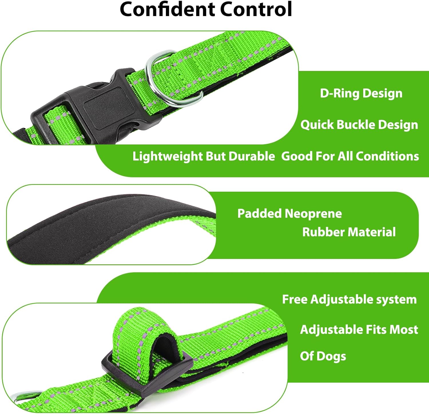Reflective Dog Collar Padded with Soft Neoprene Breathable Quick Release Basic Dog Collars for Large Dogs Green Boy Girl