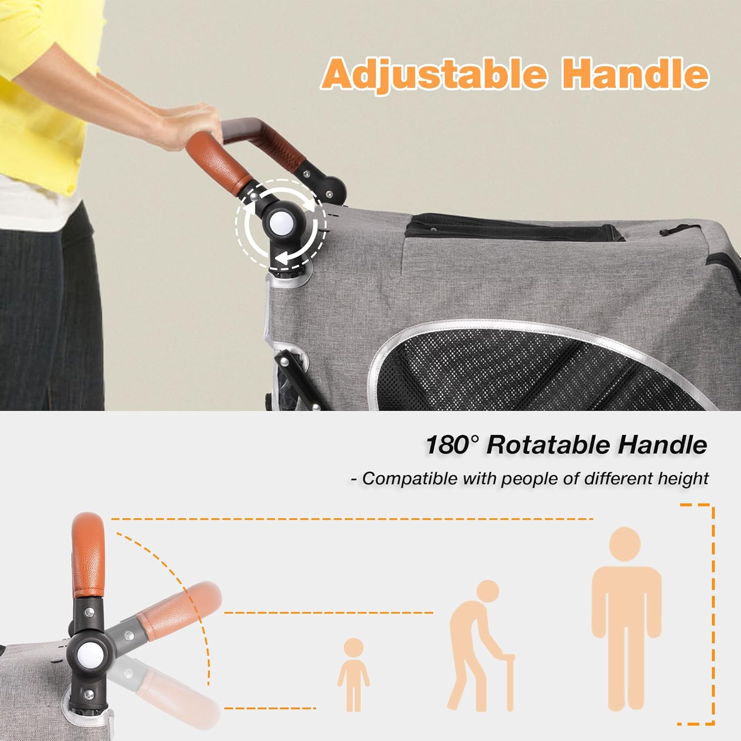 - 【Adjustable Handlebar】The handlebar can be adjusted to 180 degrees, catering to people of different heights, which ensures that everyone can comfortably stroll with their furry friends.