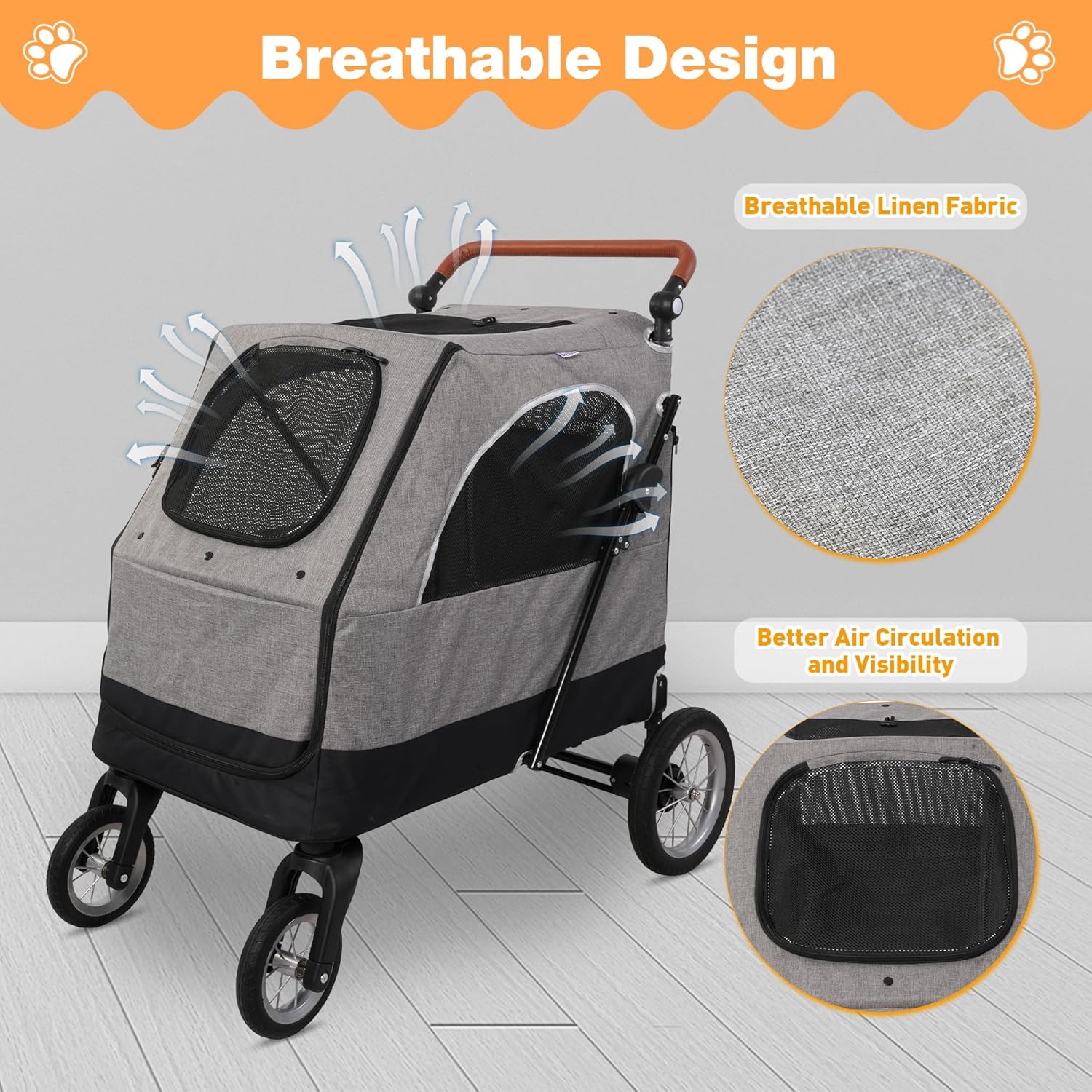 - 【Spacious Cabin】With maximal capacity of 120lbs, our extra-large stroller offers plenty of space for large pets. The roomy cabin measures 22"L x 40"W x 44"H, ensuring your pet feel comfortable and spacious.