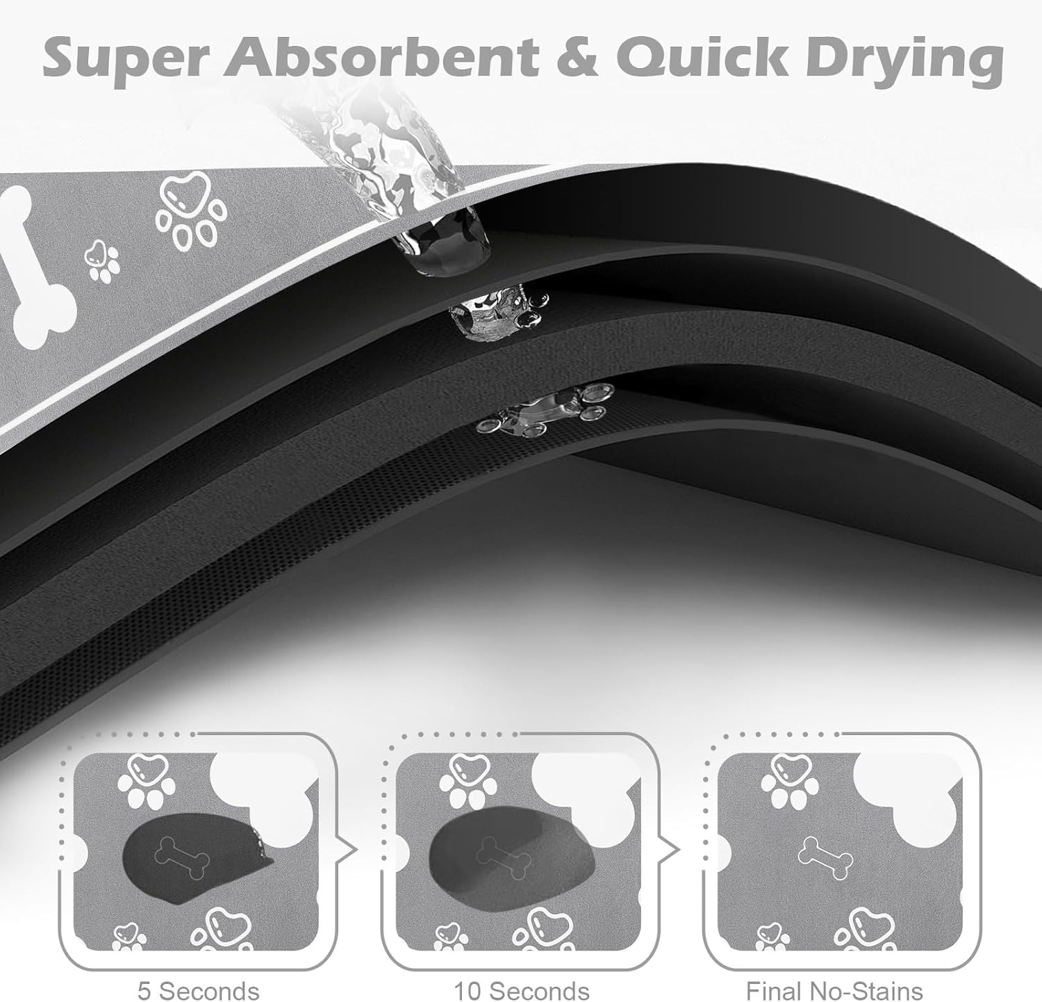 Pet Feeding Mat,Rapid Absorbent Mats for Dog Cat Food, Dog Placemat Water Bowl Mat with Rubber Backing,Messy Drinkers to Protect Floors, Pet Accessories 16"×24" Grey