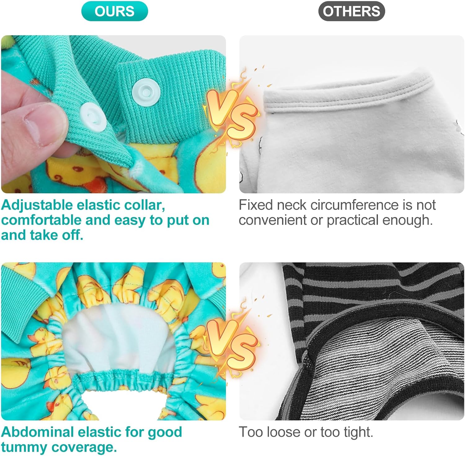 - Belly Wrap Design: The unique belly wrap design of this pet pajama fully covers your pet's belly, providing better protection. The belly is the part of the pet's body most vulnerable to cold, and the belly wrap design provides extra warmth and insulation.