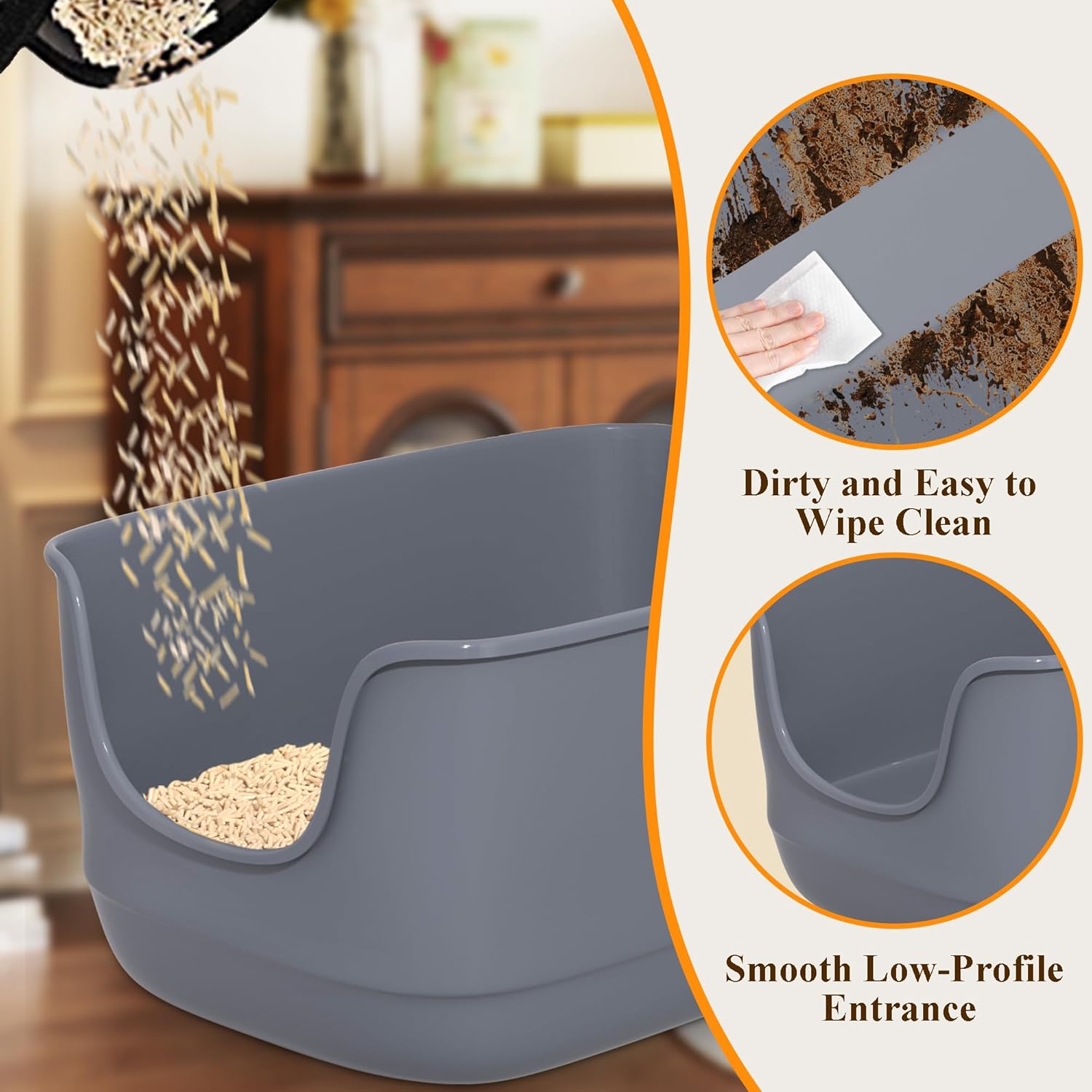 - Open Top: The open top litter box has an open view so you can see your cat's habits and health at a glance, makes it easier to clean and change litter, and the low entrance makes it easier for older cats and kittens to get in and out.