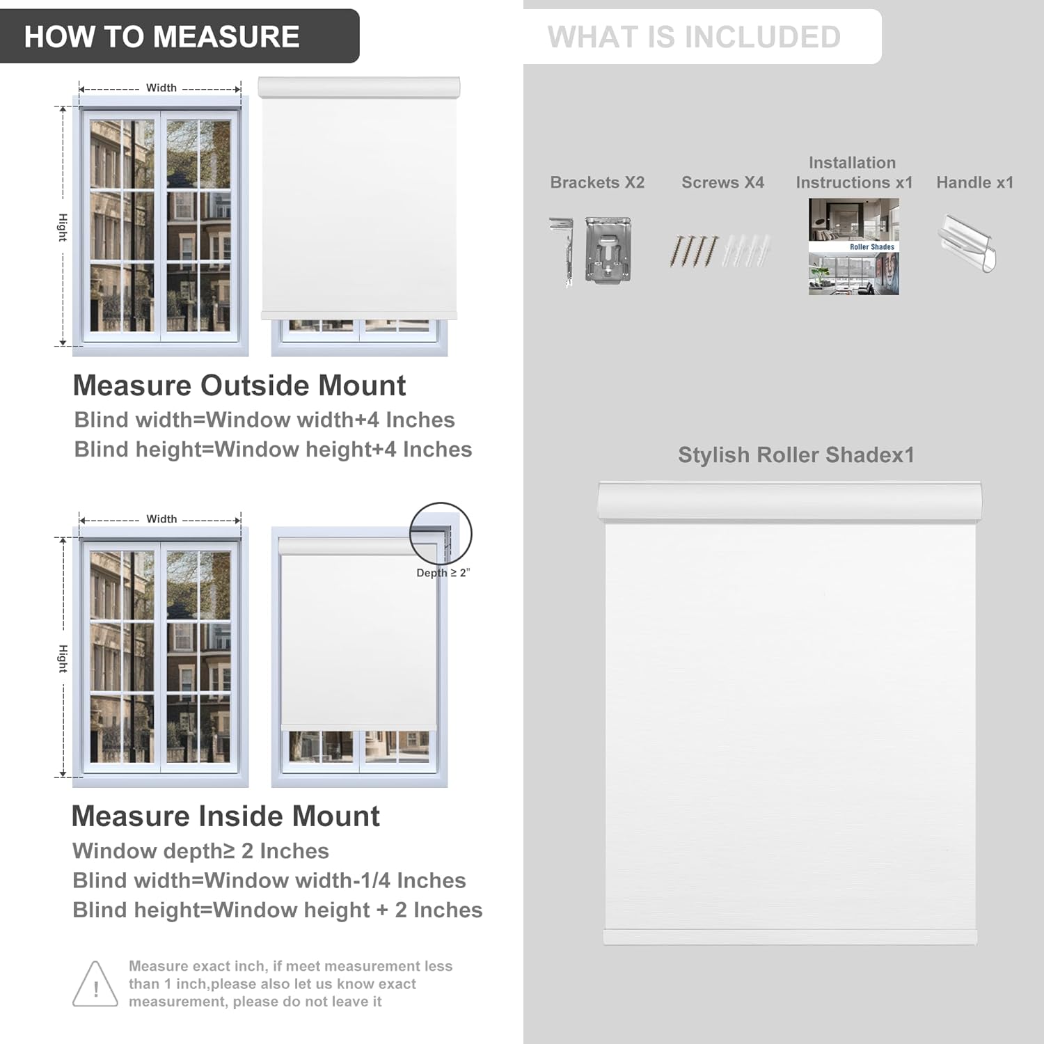 - 【INSIDE & OUTSIDE MOUNT】Inside Mounting shades for windows require a minimum 2" window frame depth. 【Inside mount】The order height you choose is the height of your window.The width you choose for your order is the width of your window - 1/4 inch. 【Outside mount】You choose the order width and height is your window width + 4 inches, height + 4 inches If the size you want is not in the list, please contact us for you Custom blinds Size