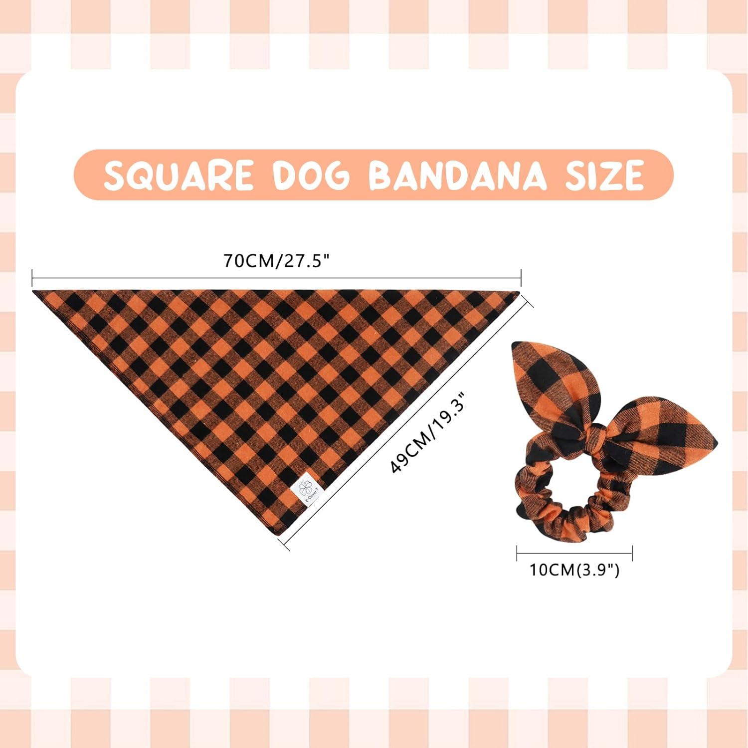 E-Clover Fall Dog Bandana & Matching Scrunchie-Orange Black Dog Bandanas Plaid Pet Scarf Bib for Medium Large Dogs Girl Boy Owner Gift Orange Black