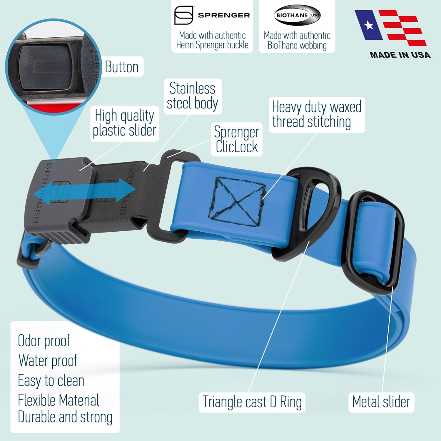 Dogline Biothane Waterproof Dog Collar with Herm Sprenger Black Stainless Steel Quick Release Buckle – Heavy Duty Tactical Durable Collar for Dogs – Comfortable and Safe Pet Collar W 1" L 15-25" Blue