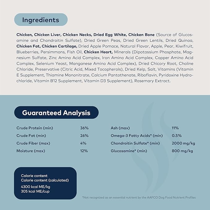 - SINGLE PROTEIN, NUTRIENT DENSE: Featuring cage-free chicken, organs, bone, this grain-free dog food delivers nutrition with a mouth-watering taste for all dogs. The Steam & Dry approach safely preserves nutrients for a balanced healthy diet. The great taste and soft but crunchy texture is perfect for all life stages, from puppy food to senior dog food needs.
