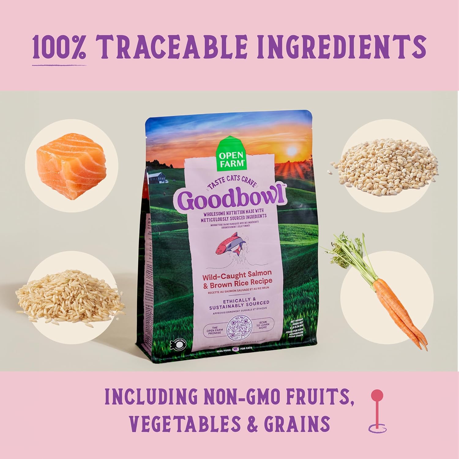 Open Farm Goodbowl, Protein Rich Dry Cat Food Made from Meticulously Sourced Simple Ingredients, Wild-Caught Salmon & Brown Rice Recipe, 7lb Bag (112oz Bag)
