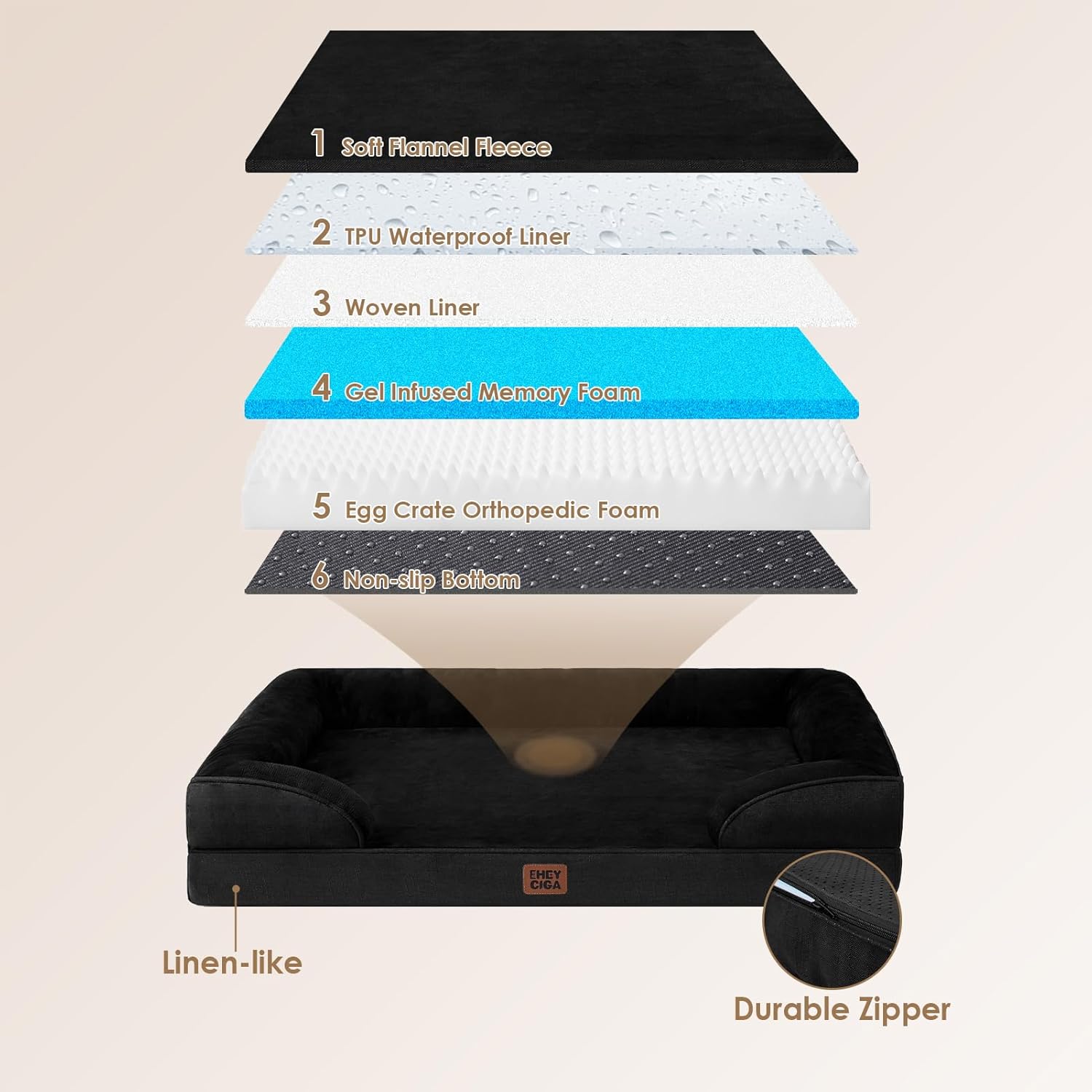 EHEYCIGA Orthopedic Dog Bed for Medium Dogs, Waterproof Memory Foam Medium Dog Beds with Sides, Non-Slip Bottom and Egg-Crate Foam Pet Couch Bed with Washable Removable Cover, Black