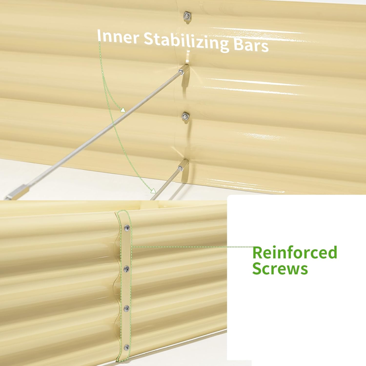 Land Guard 8×4×1ft Galvanized Metal Raised Garden Bed, Metal Planter Kit Box Outdoor for Deep-Rooted Vegetables, Flowers, Green and Herbs (Cream Yellow)…